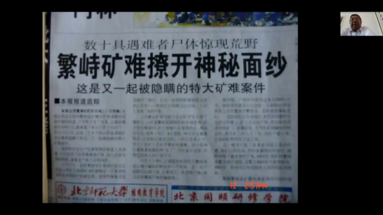 刘畅结合自己的报道经历,强调记者“挖掘真相”的重要性。2002年山西繁峙发生金矿爆炸事故,在接到遇难者家属电话举报后,刘畅带领记者第一时间赶到山西矿区,通过深入调查揭露了行贿官员、隐瞒事故、毁尸灭迹、威胁家属等矿难黑幕,还原事实真相。首篇调查《惨剧真相扑朔迷离——聚焦山西繁峙金矿爆炸案》一经见报,举国震惊。系列报道引发舆论高度关注,促使山西繁峙金矿爆炸事故最终真相大白。