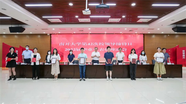 6月9日,南开大学在津南校区举办第42次校领导接待日暨2022届毕业生表彰座谈会,表彰优秀毕业生代表,交流毕业生对南开最真诚的心声。校长曹雪涛、校党委副书记牛文利出席。
