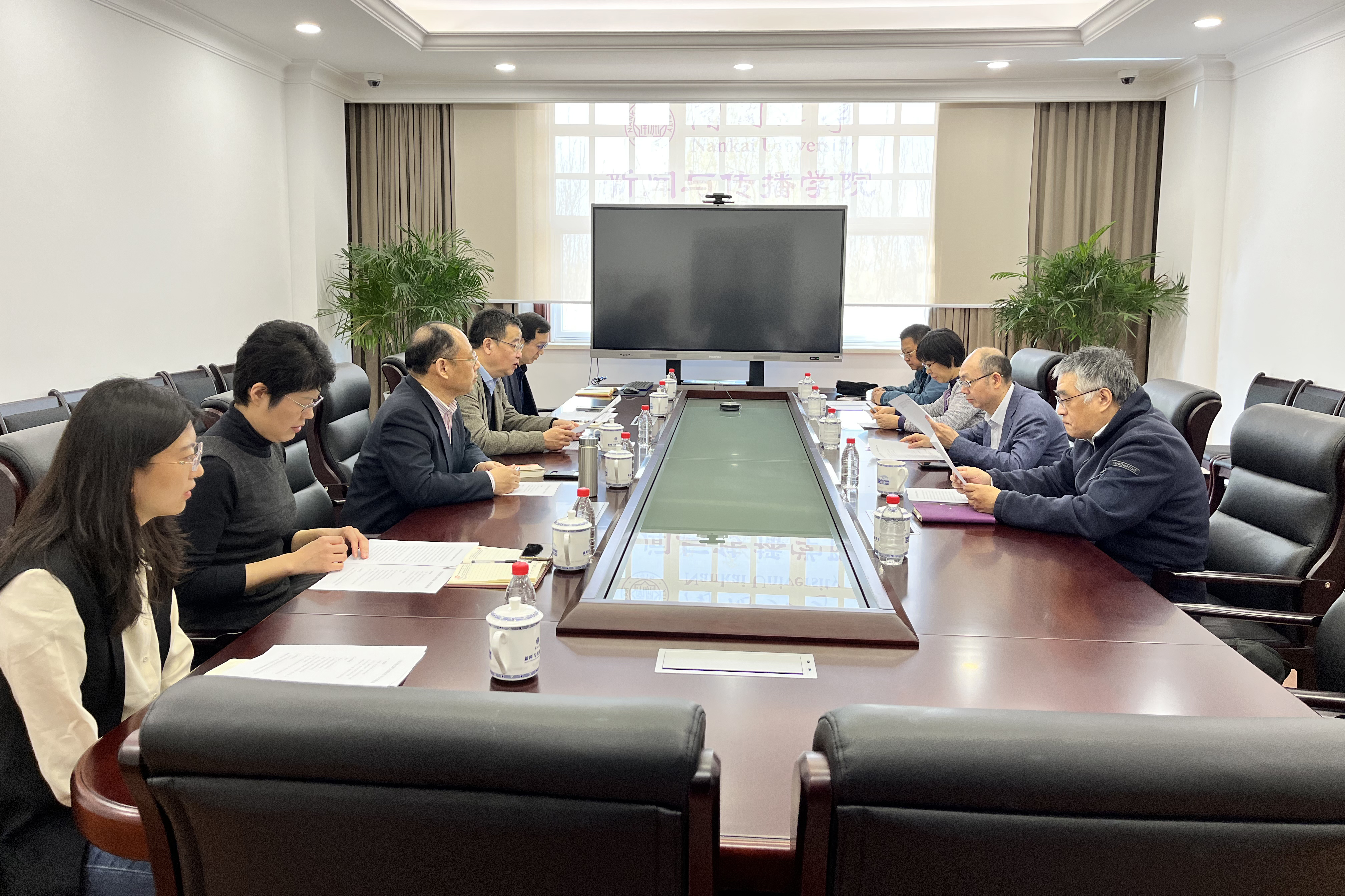 3月24日上午,历史学院院长余新忠教授一行来访新闻与传播学院,刘亚东院长在秀山堂208室会见了客人,双方就两院共同合作的课题《张伯苓思想与南开发展》的推进工作展开研讨。
