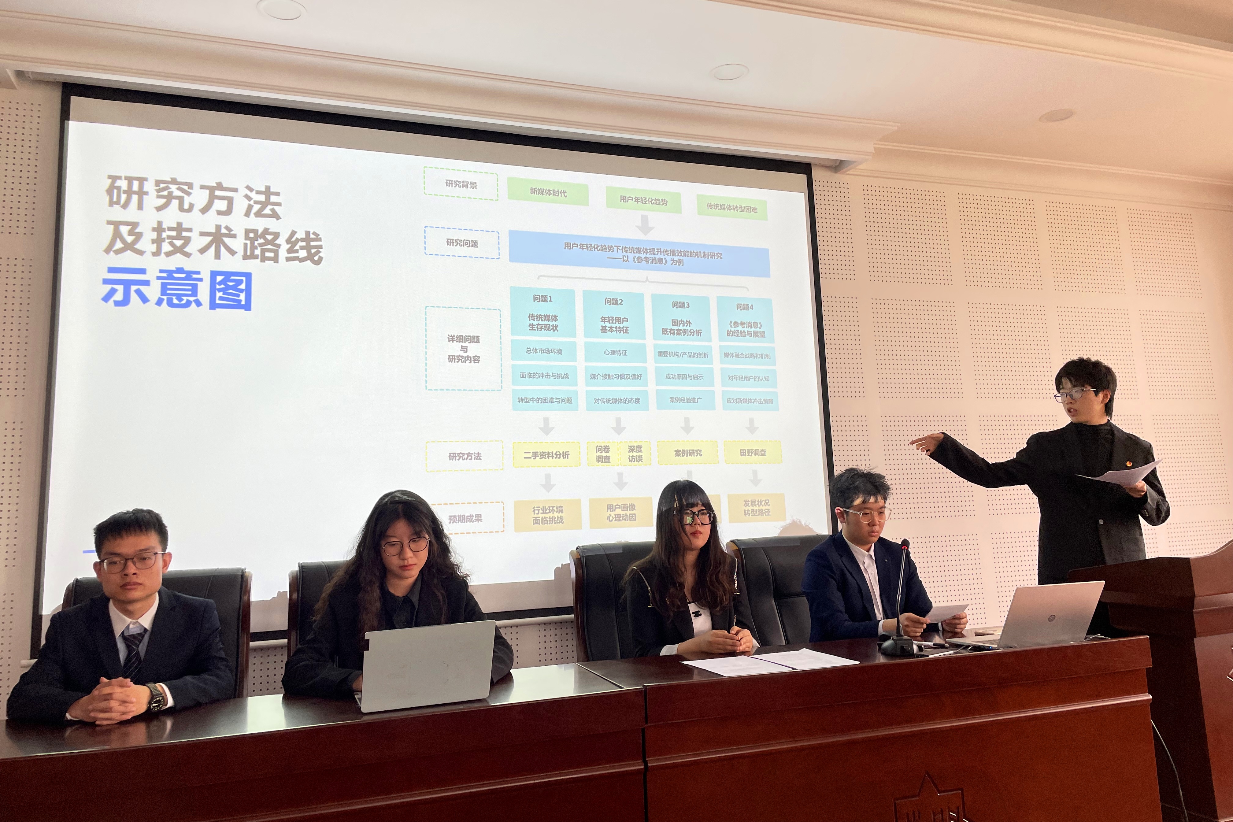4月13日,新闻与传播学院在秀山堂举行本科生创新科研计划创新训练2022年度项目结项和2023年度项目立项评审会暨经验交流会。学院戚德祥、孙德宏、陈宁教授,田亦洲老师,党委书记马长虹出席评审会担任评委。