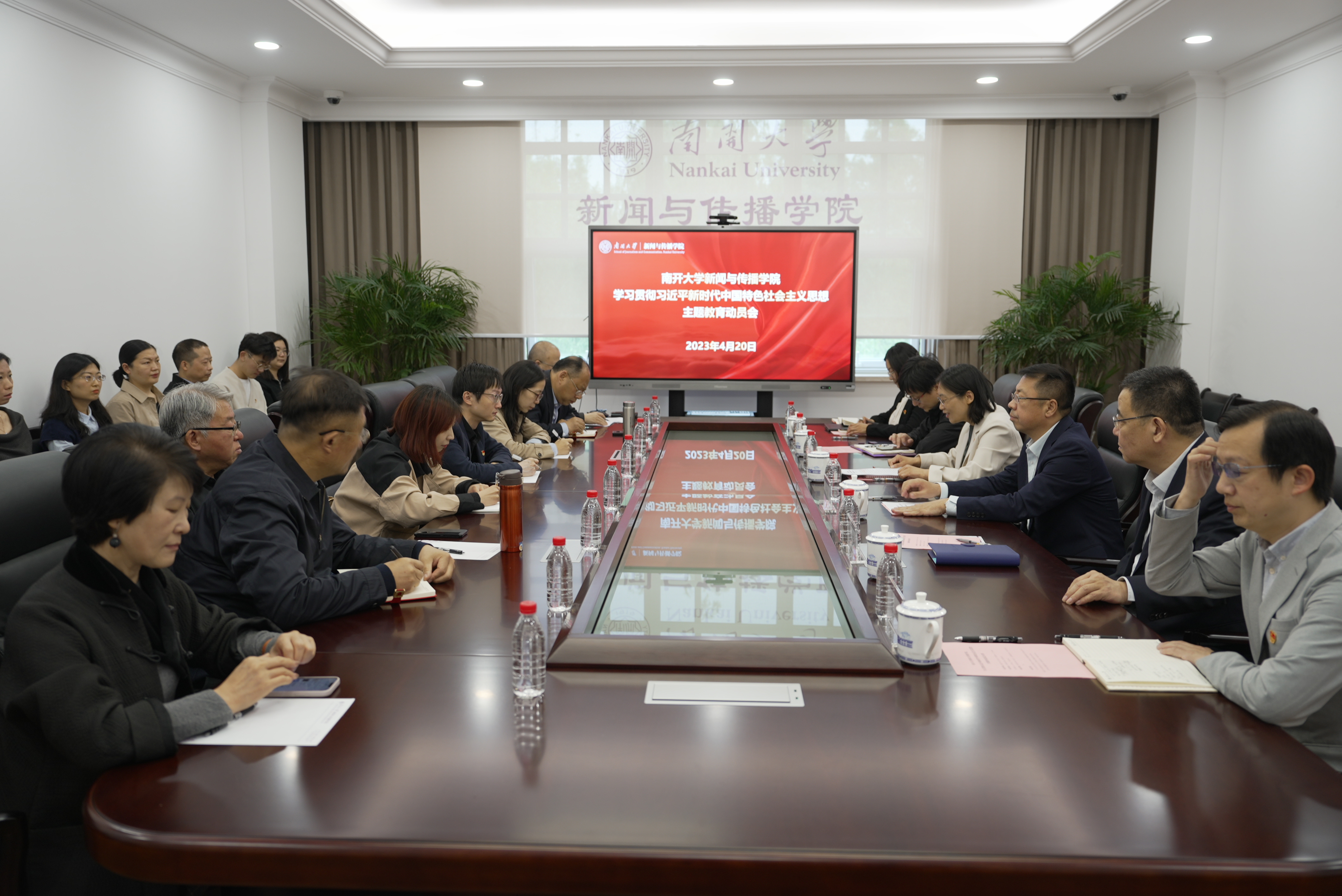 4月20日上午,南开大学新闻与传播学院召开学习贯彻习近平新时代中国特色社会主义思想主题教育动员会,对学院深入开展主题教育进行动员部署。学校党委常委、主题教育第一指导组组长于海出席会议并作指导讲话。新闻与传播学院党委书记马长虹作动员部署。学校主题教育第一指导组成员,新闻与传播学院班子全体成员、教师党员、学生党员代表参加会议。
