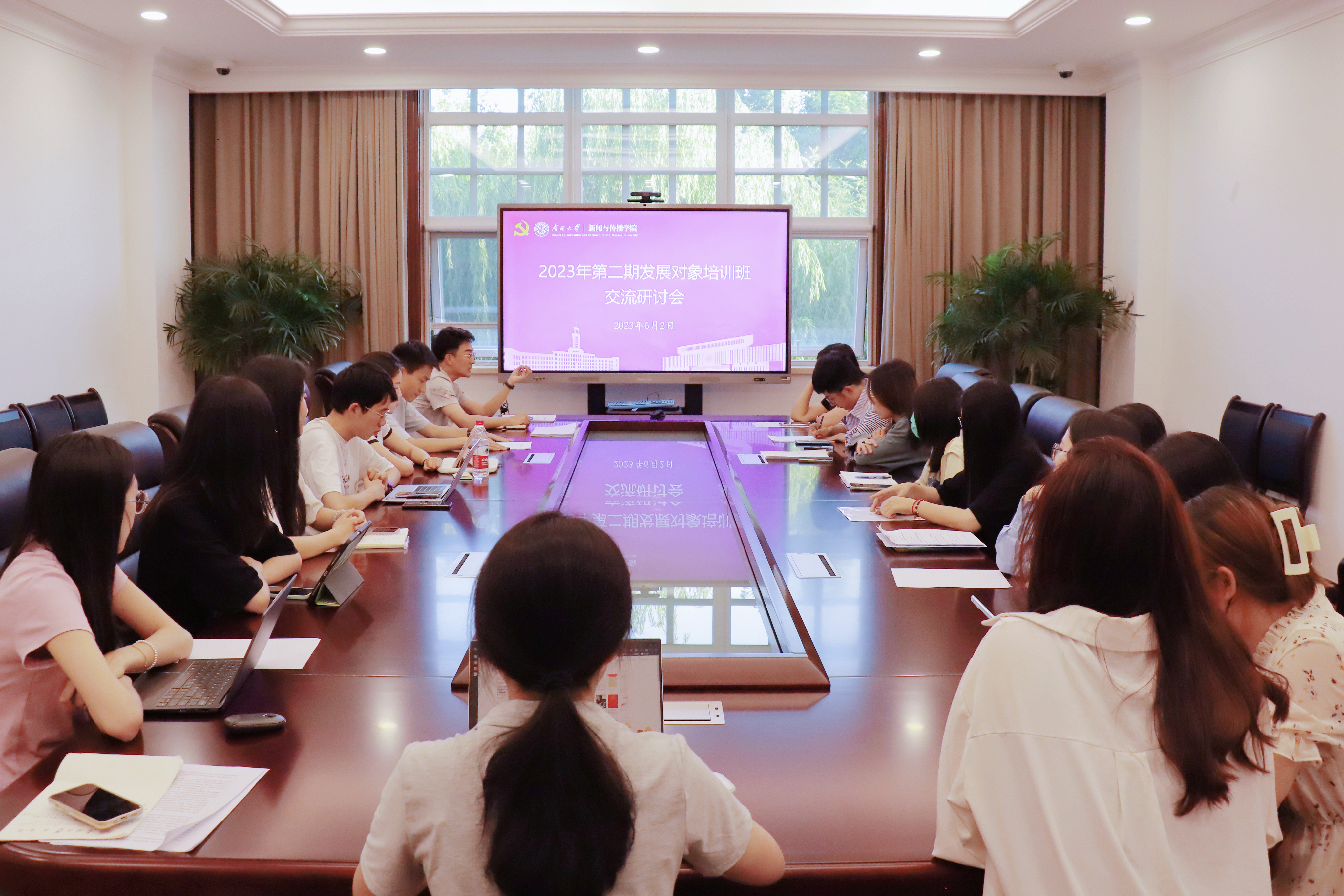 为学习贯彻习近平新时代中国特色社会主义思想和党的二十大精神,扎实开展好主题教育,6月2日下午,新闻与传播学院举办2023年第二期发展对象培训班交流研讨会。学院分党校办公室主任高磊、高年级硕士生党支部书记李昱、2022级硕士生党支部书记王雨婷,本期发展对象培训班全体学员参加会议。