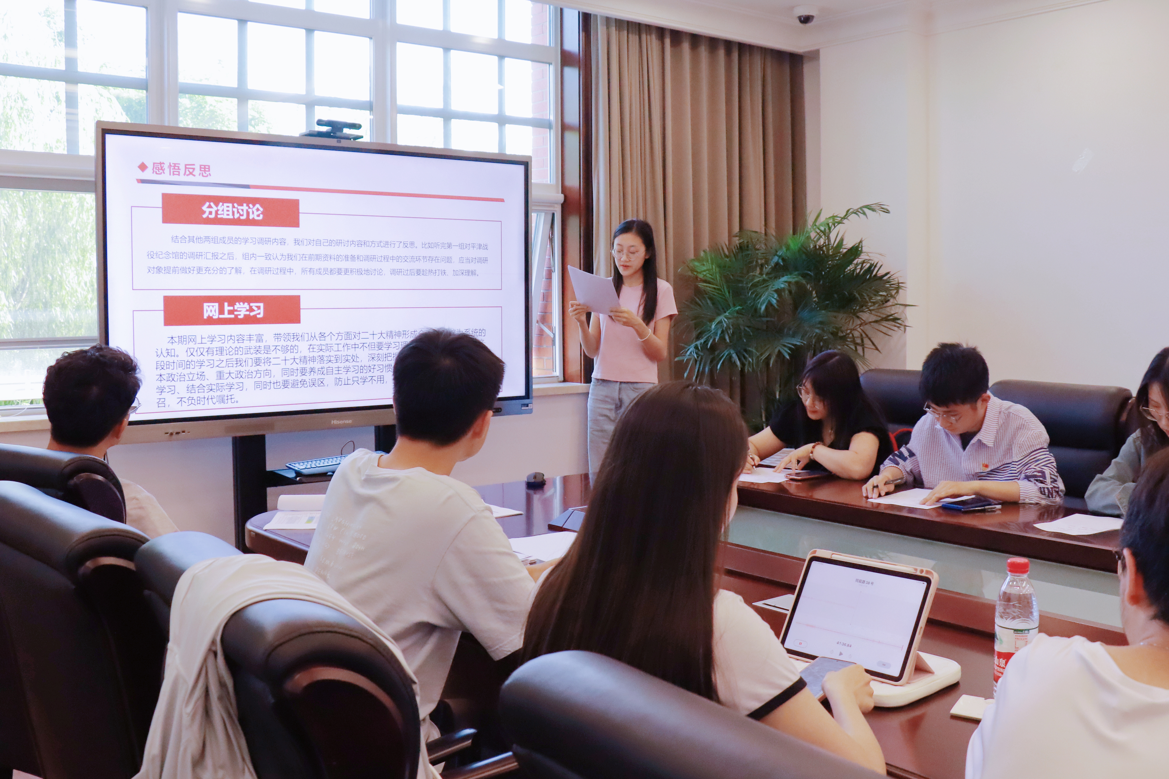 高磊、李昱、王雨婷、范越结合各小组学习调研情况进行评议并提出意见建议,要求各位学员要进一步加强理论学习,在学习、生活中发挥先锋模范作用。