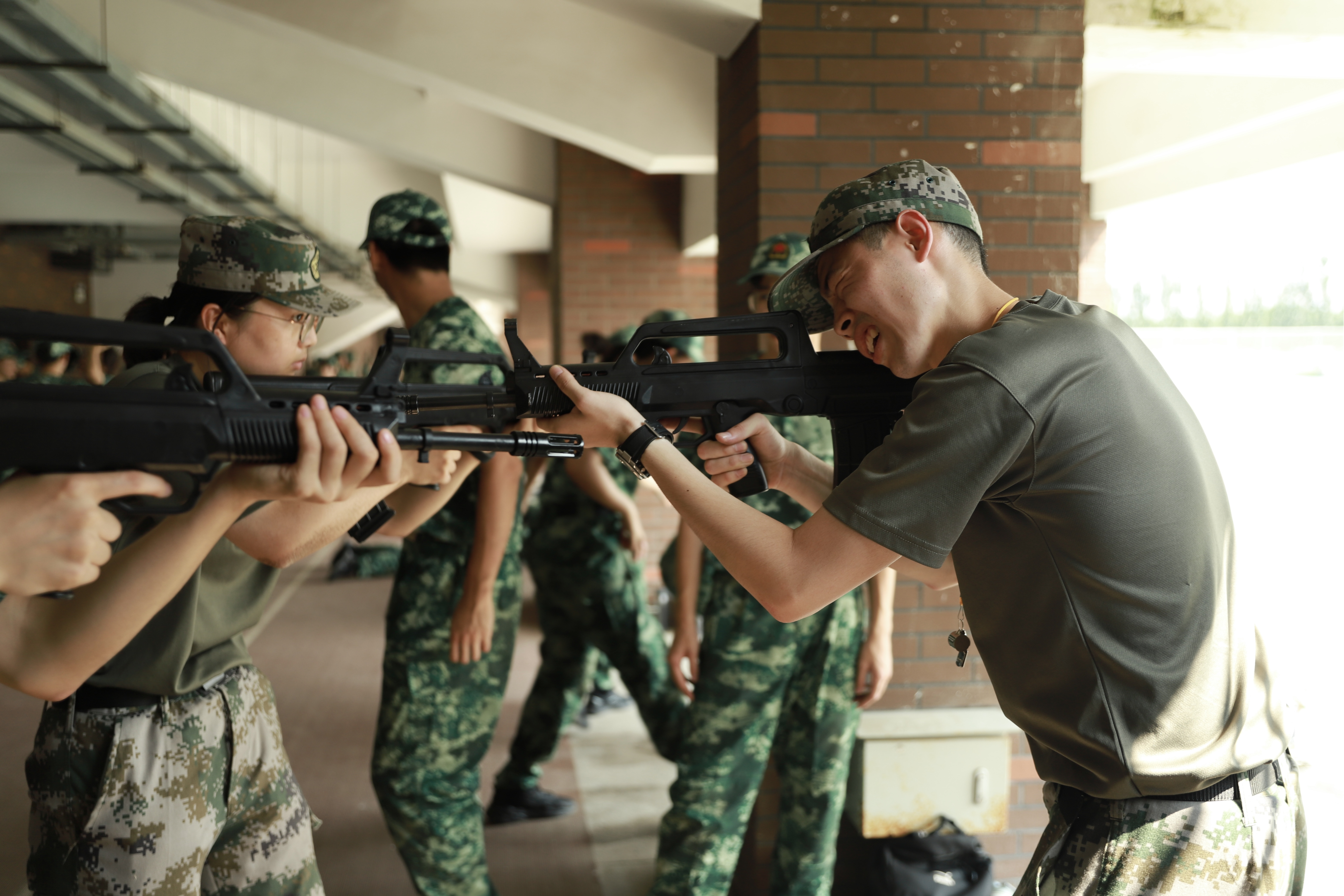 战术动作的学习也成为了同学们军训中的一大亮点。他们首先学习了枪支的结构以及射击的不同姿势。在教官的指导下,同学们认真学习,积极与教官互动。尽管阳光炽热,但他们依然坚定地手持枪支,做出标准的动作,眼神坚定。