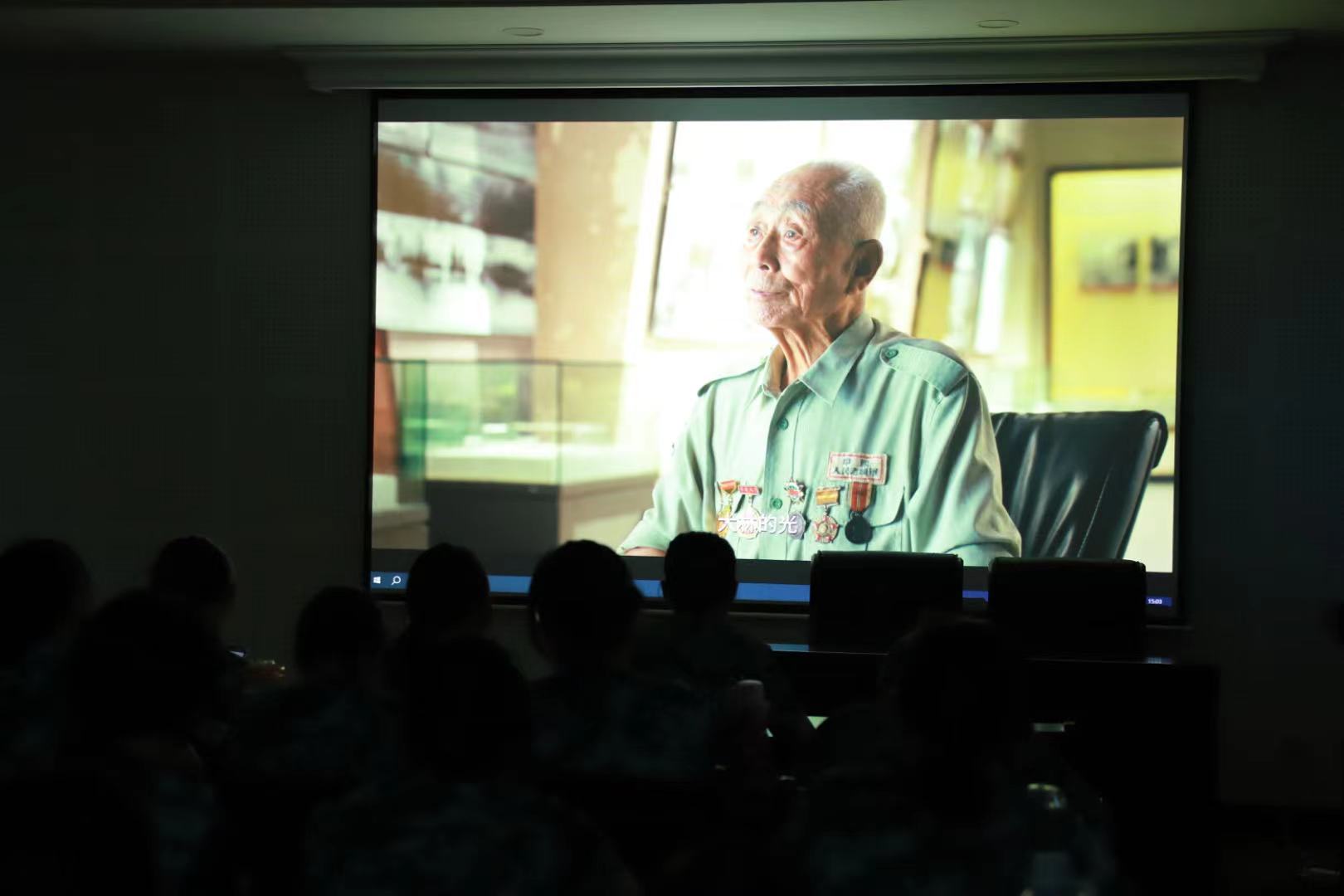 第二次指导员带领大家观看了讲述抗美援朝战争故事的爱国教育影片《1950他们正年轻》。志愿军们的革命事迹与精神信念深深触动了同学们。在日后的训练中,同学们也像抗美援朝志愿军们一样,敢吃苦,能吃苦,不怕苦,以自己的行动传承革命精神!