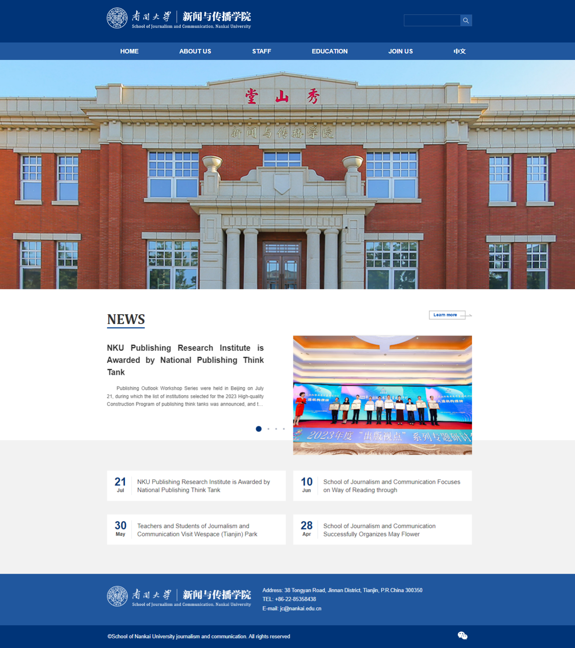 近日,新闻与传播学院英文网站https://jcen.nankai.edu.cn正式上线,英文网站面向国际学术界、留学生、国际媒体、国际合作伙伴等群体,内容突出教学科研,栏目设置包括学院总体介绍、学院新闻、学科专业、课程设置、师资信息、科研项目及合作情况等,及时公布学院研究成果和最新进展、报道学院交流合作情况,多角度展示学院发展动态。