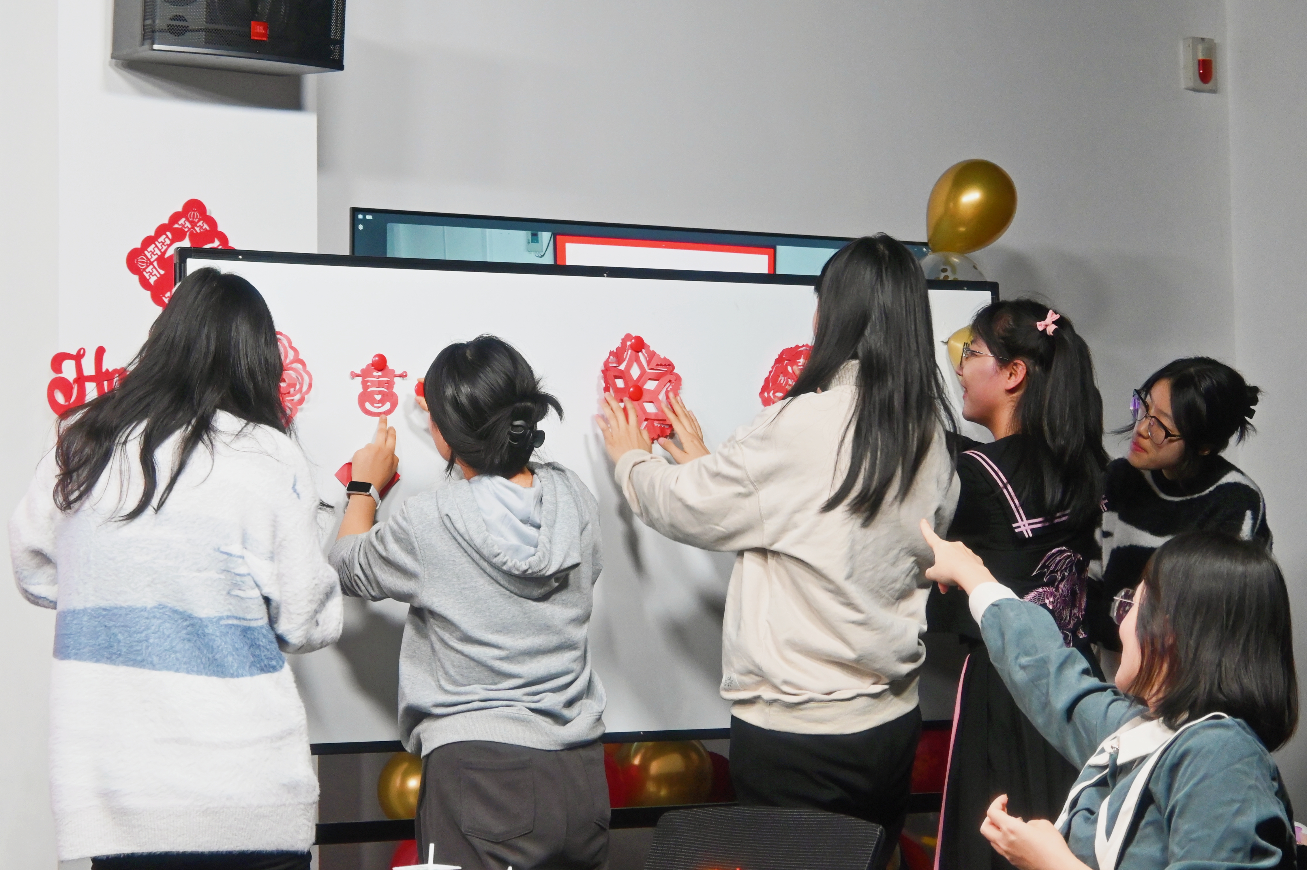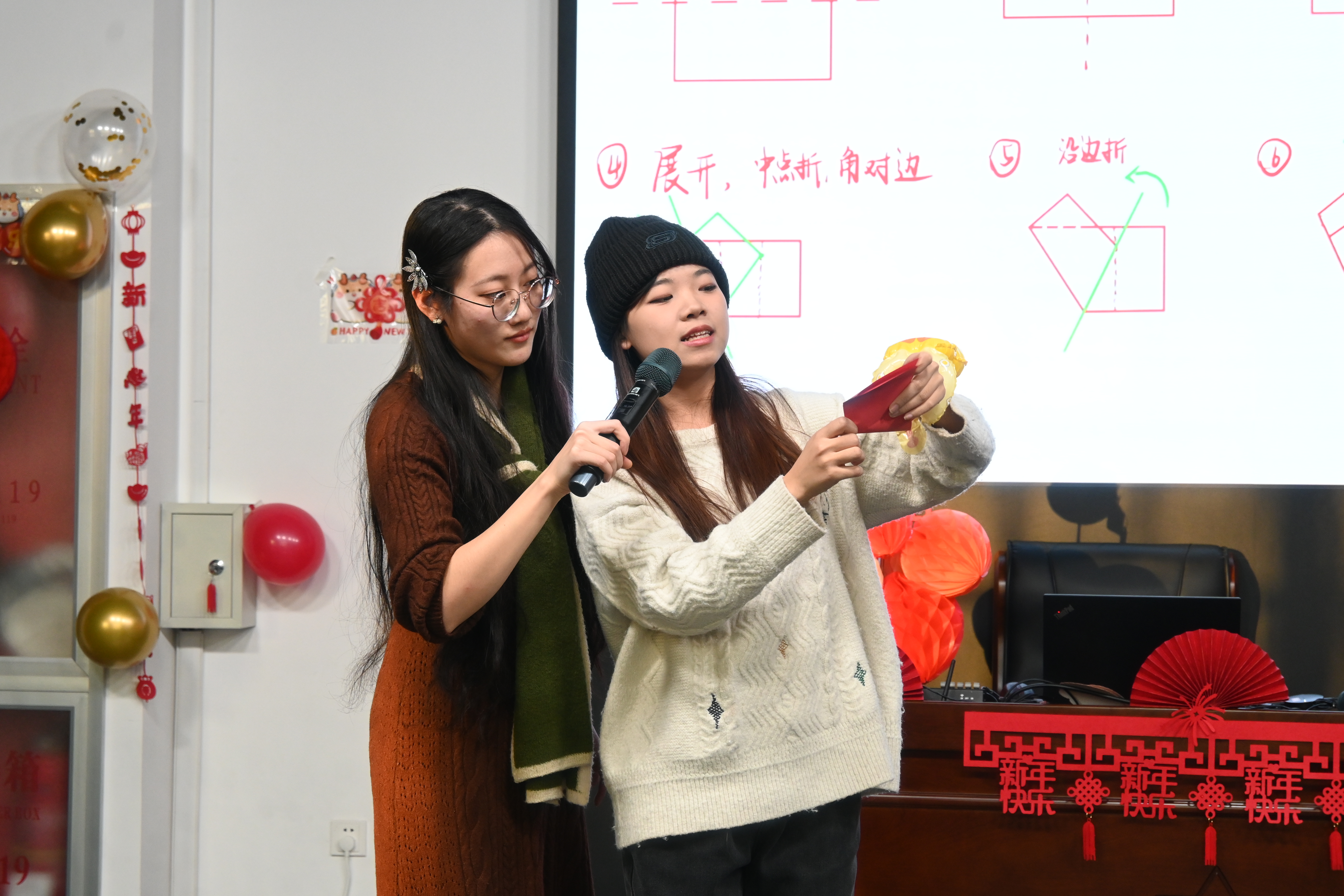 在徐诗怡同学的带领下,大家还现场学习了剪纸、制作窗花,老师同学们纷纷上手,制作出了许多富有创意、别出心裁的作品。一翻一折、一裁一剪,寄托着大家对新年的美好愿望,营造出欢乐吉祥、喜气洋洋的新年氛围。