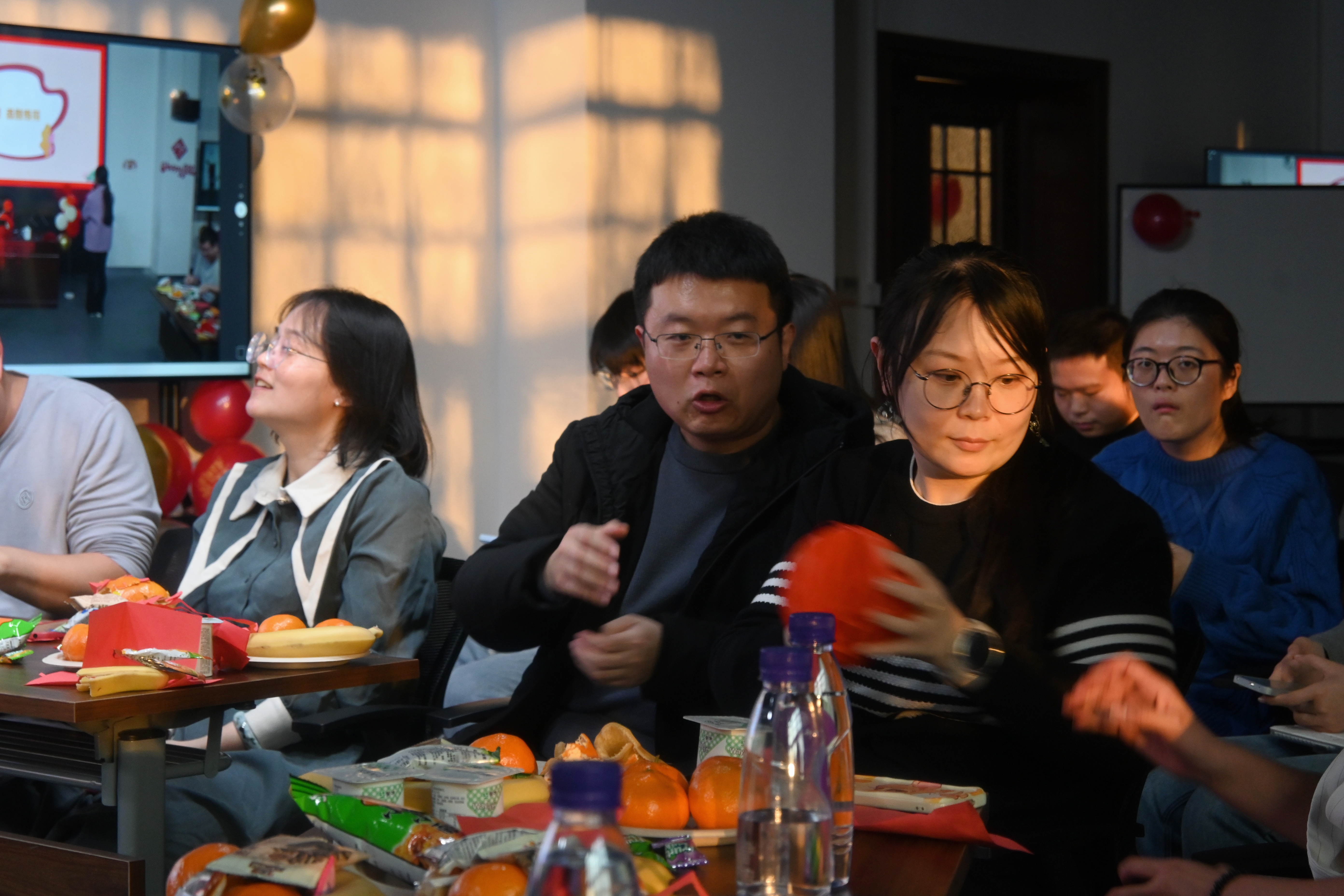 在精彩的节目中间,还穿插了妙趣横生的游戏和激动人心的抽奖环节。击鼓传花、你说我猜,在速度与思维的“较量”之中也充满了无限欢乐;抽奖送出的暖宝宝、保温杯、零食大礼包等小礼品更是为同学们在岁末年初的寒冷之中增添了一份暖意。
