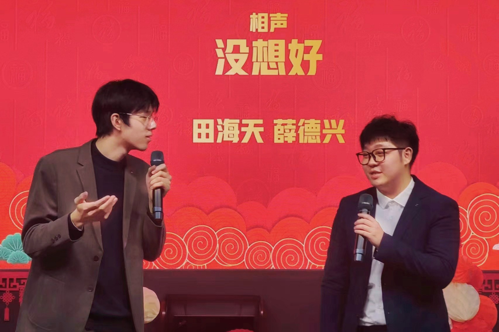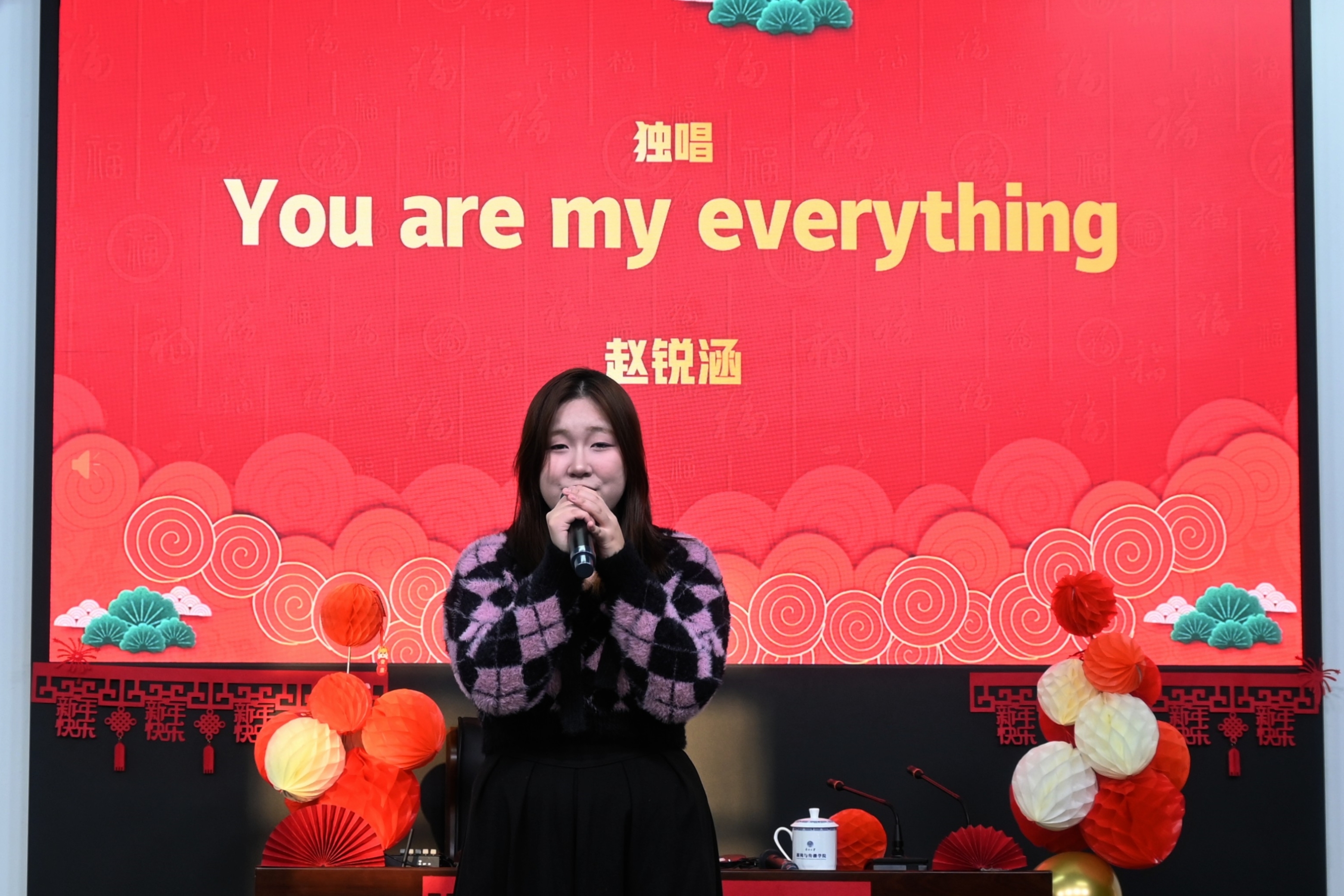 在热闹的联欢环节,同学们大展才华,带来了形式多样、精彩纷呈的节目。赵锐涵的《You are my everything》,白鹤滢的《独角戏》,董瑜涵、范湘晗的合唱《想把我唱给你听》,以声传情、引人入胜;吕良宸的京剧《三家店(选段)》,字正腔圆、绘声绘色;薛德兴、田海天的相声《没想好》,诙谐幽默、寓教于乐;柴佳琦带来的戏曲说唱混搭节目,融通古今、雅俗共赏;周雅轩的舞蹈串烧,活力四射,惊艳全场。现场掌声、欢呼声、尖叫声不绝于耳,热闹非凡。