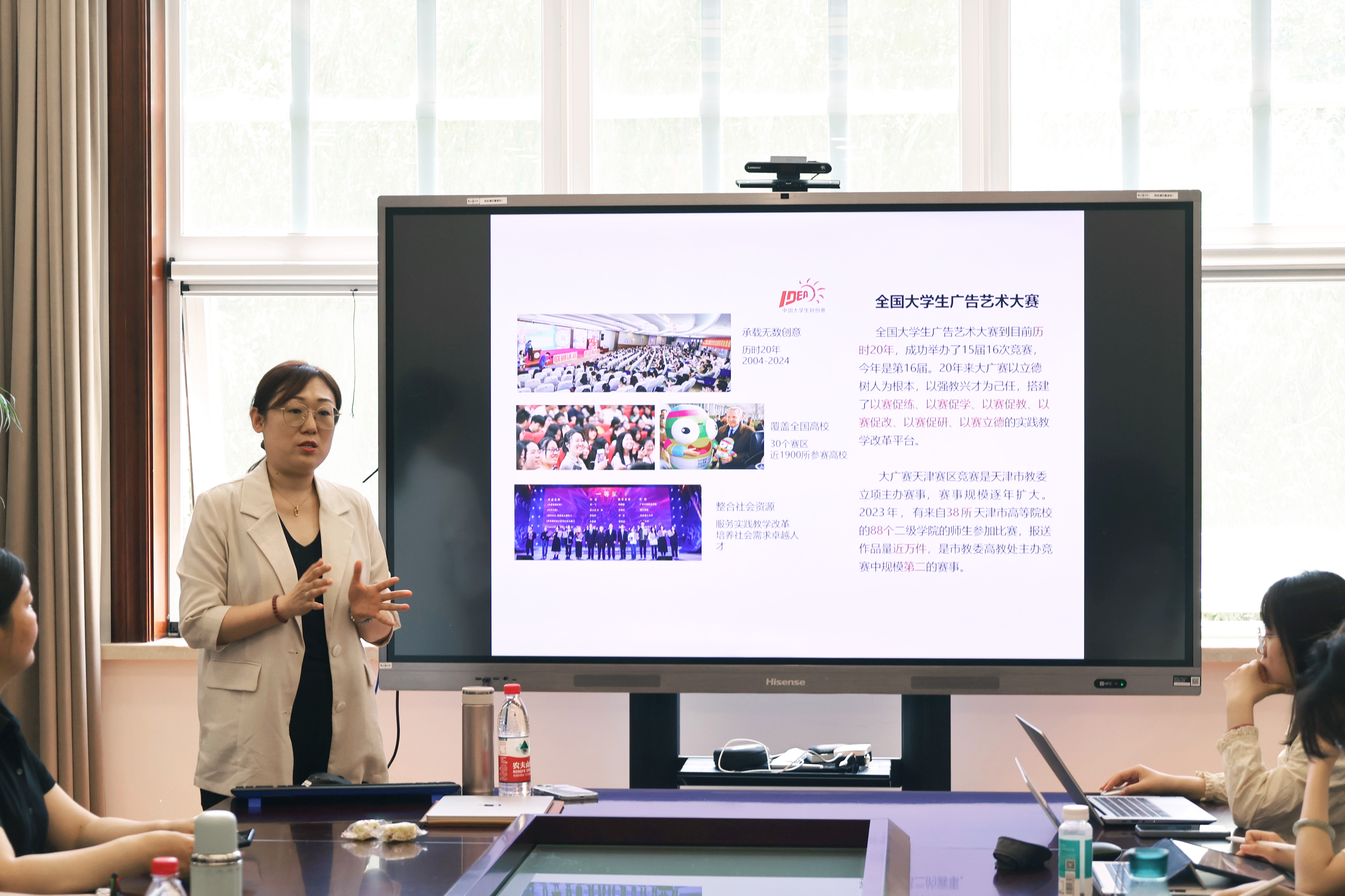 胡振宇首先介绍了本届大广赛的命题、赛程、赛道等基本情况,并特别说明本届大赛天津赛区增设了校赛初审环节,参赛作品会首先在学校范围内进行遴选和评奖,以便让同学们有更多的获奖机会。