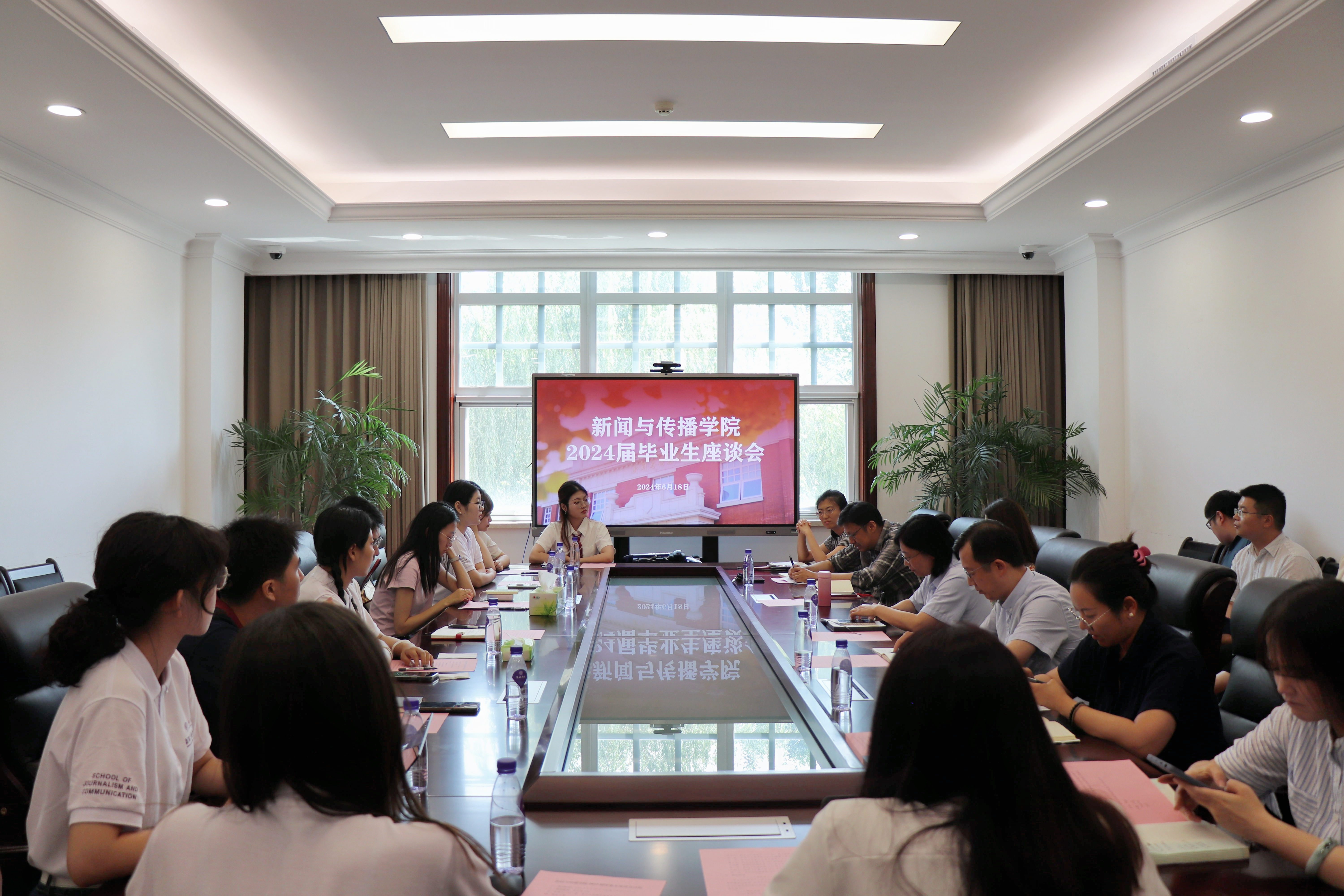 仲夏已至,骊歌悠扬,秀山堂又迎别离时。6月18日下午,新闻与传播学院2024届毕业生代表座谈会在秀山堂举行。学院班子全体成员、教师代表和服务团队成员和毕业生代表参加此次座谈会。