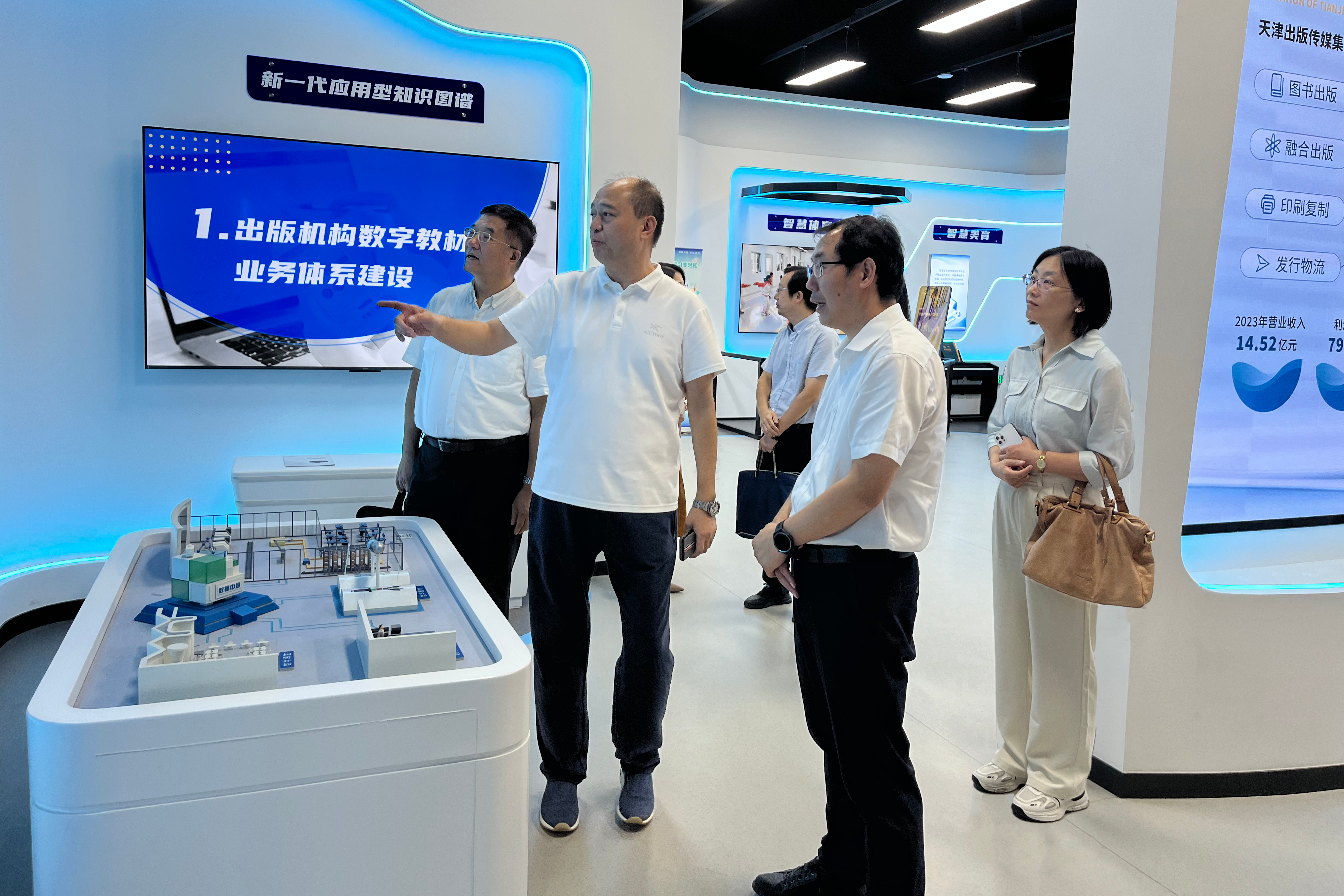 天津出版传媒集团党委副书记、工会主席高坤山,副总编辑张纪欣,出版部部长刘子媛,组织人事部部长王斌,党委宣传部部长胡宝华,天津人民出版社党总支书记、总经理刘锦泉,天津古籍出版社党支部书记、总经理、天津人民出版社总编辑、天津出版国际文化发展有限公司总经理任洁,集团数字融合部副部长、天津津版数融传媒有限公司总经理王美娜,南开大学新闻与传播学院党委书记马长虹,副院长陈娜、陈鹏,南开大学出版研究院常务副院长戚德祥参加调研交流。(图文/崔文明)