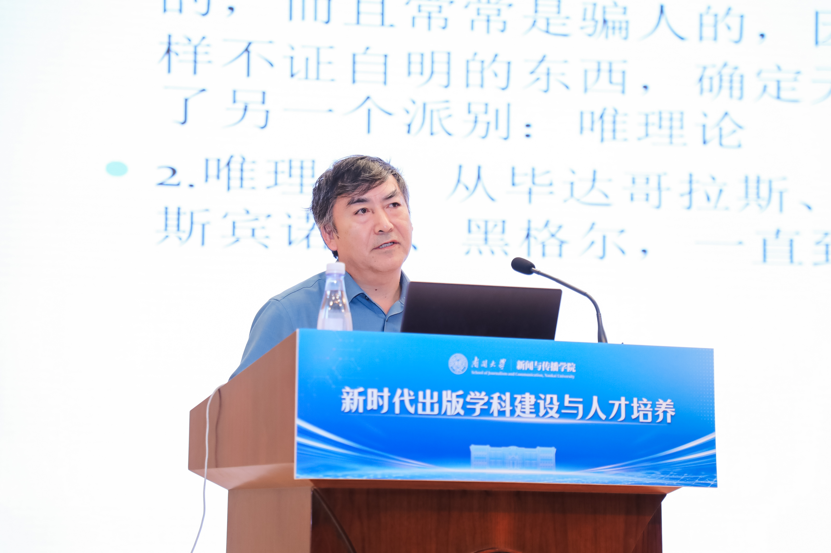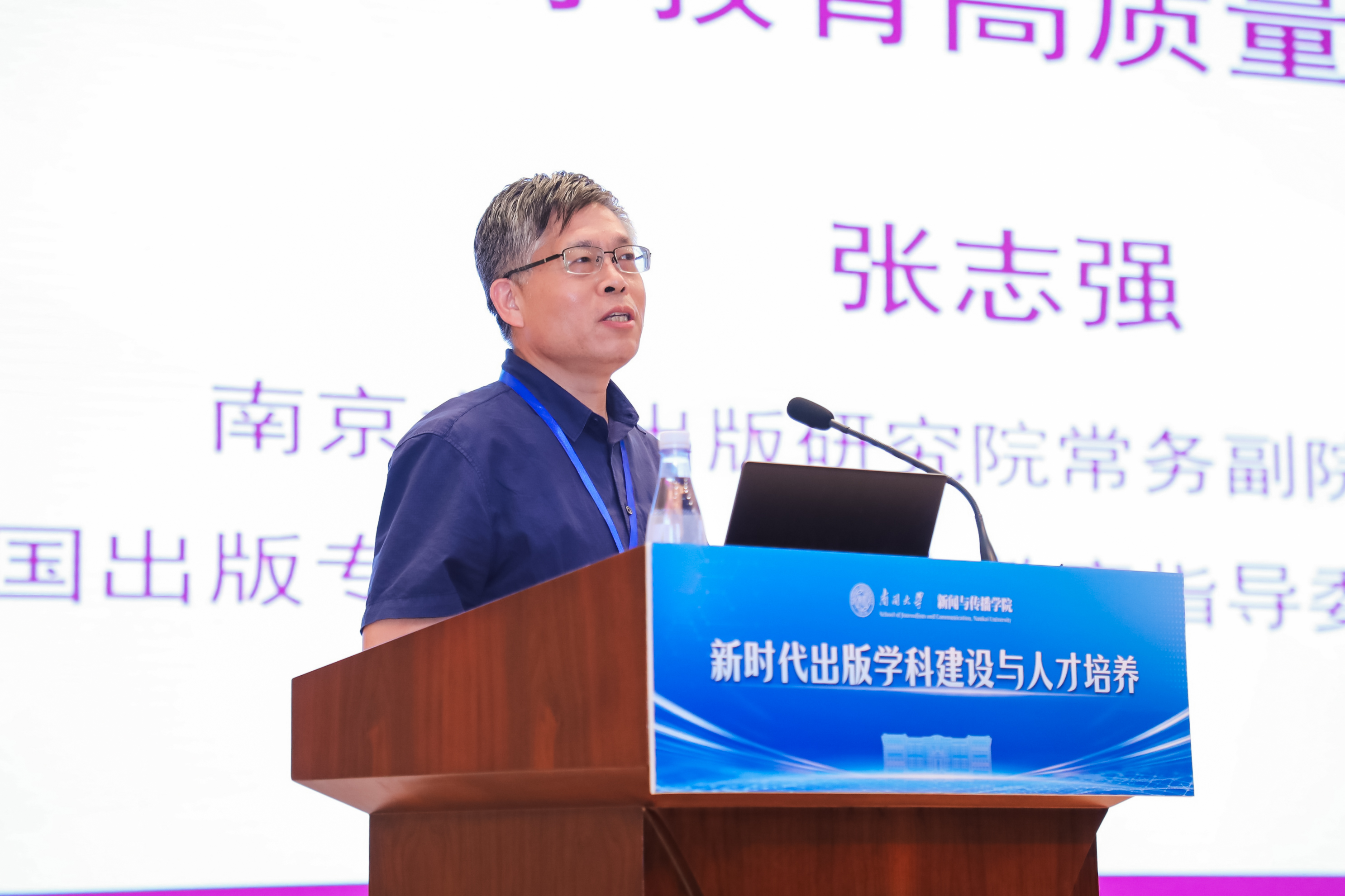 主旨发言环节由南开大学出版研究院常务副院长戚德祥主持。多位重量级学者带来了精彩的学术演讲。 南京大学出版研究院常务副院长张志强,中国人民大学新闻学院教授周蔚华,北京印刷学院党委原常委、副校长王关义,华中师范大学文学院教授范军,上海理工大学出版学院教授施勇勤,南开大学新闻与传播学院教授刘运峰分别以“出版高等教育高质量发展探讨”“人工智能与知识重构”“聚焦人工智能发展趋势 探索出版学科专业建设新模式”“回顾与展望:近五年出版学自主知识体系建设研究”“数智时代编辑出版专业实践能力培养的探索”“出版的本质属性、出版学课程体系构建及人才培养模式刍议”为题作主旨报告。