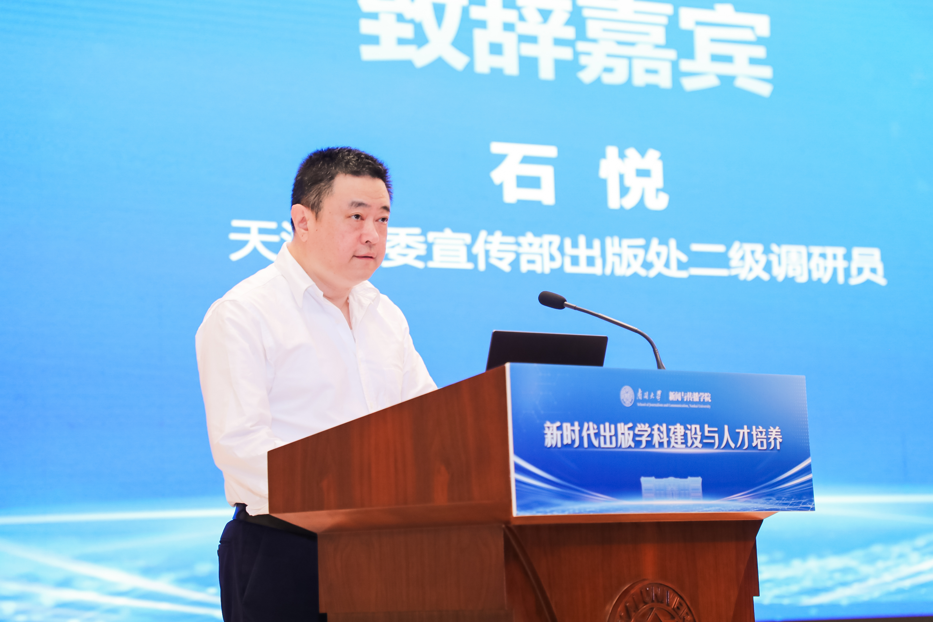 石悦在致辞中表示,过去40年,南开大学与北京大学、复旦大学等高校一起,肩负起为国家培养高素质编辑出版人才的历史使命。2023年7月,南开大学出版研究院的成立并成功入选国家新闻出版署公布的国家出版智库高质量建设计划,这不仅是对南开大学新闻与传播学院学术实力和研究成果的高度认可,也标志着学院在出版学科领域的领先地位得到了进一步巩固和提升。新时代赋予了出版业新的使命和挑战,石悦呼吁出版界同仁共同努力,推动出版学科建设和人才培养事业不断进步。