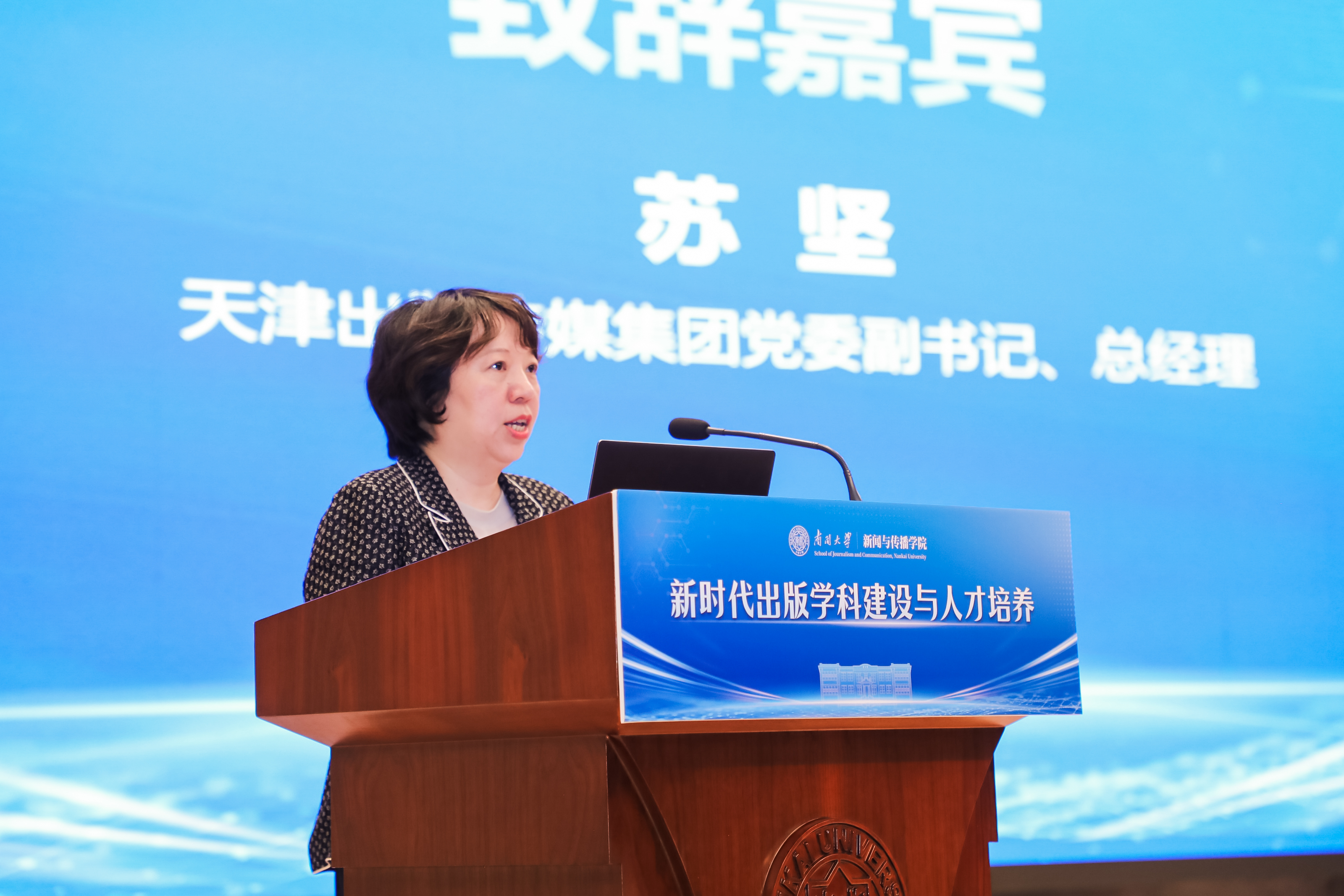 苏坚分享了天津出版传媒集团近年来在融合出版领域取得的成就。她表示,随着人工智能、大数据、区块链等新兴技术的广泛应用,出版业的结构、形式和传播方式都发生了巨大变化。她呼吁出版企业与高校紧密合作,共同探索出版业的新模式,培养适应新时代需求的出版人才。同时也期待天津出版传媒集团与南开大学的合作更加深入,在学术精品出版、专业人才培养、数字化转型等方面实现资源共享、优势互补,推动双方共同发展。