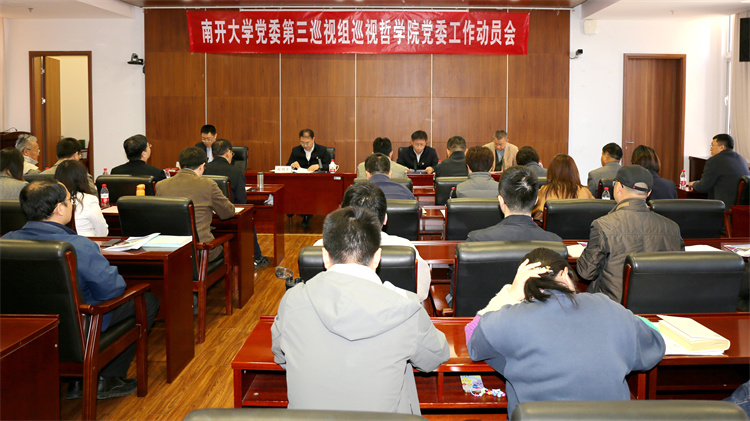 近日,南开大学第十届党委第五轮巡视数学科学学院党委、商学院党委、电子信息与光学工程学院党委、新闻与传播学院党委、周恩来政府管理学院党委、哲学院党委工作进驻动员会召开。校党委副书记、纪委书记、国家监委驻南开大学监察专员赵美蓉,党委副书记牛文利,党委常委、副校长白承铭,党委副书记曲明军分别出席会议并讲话。