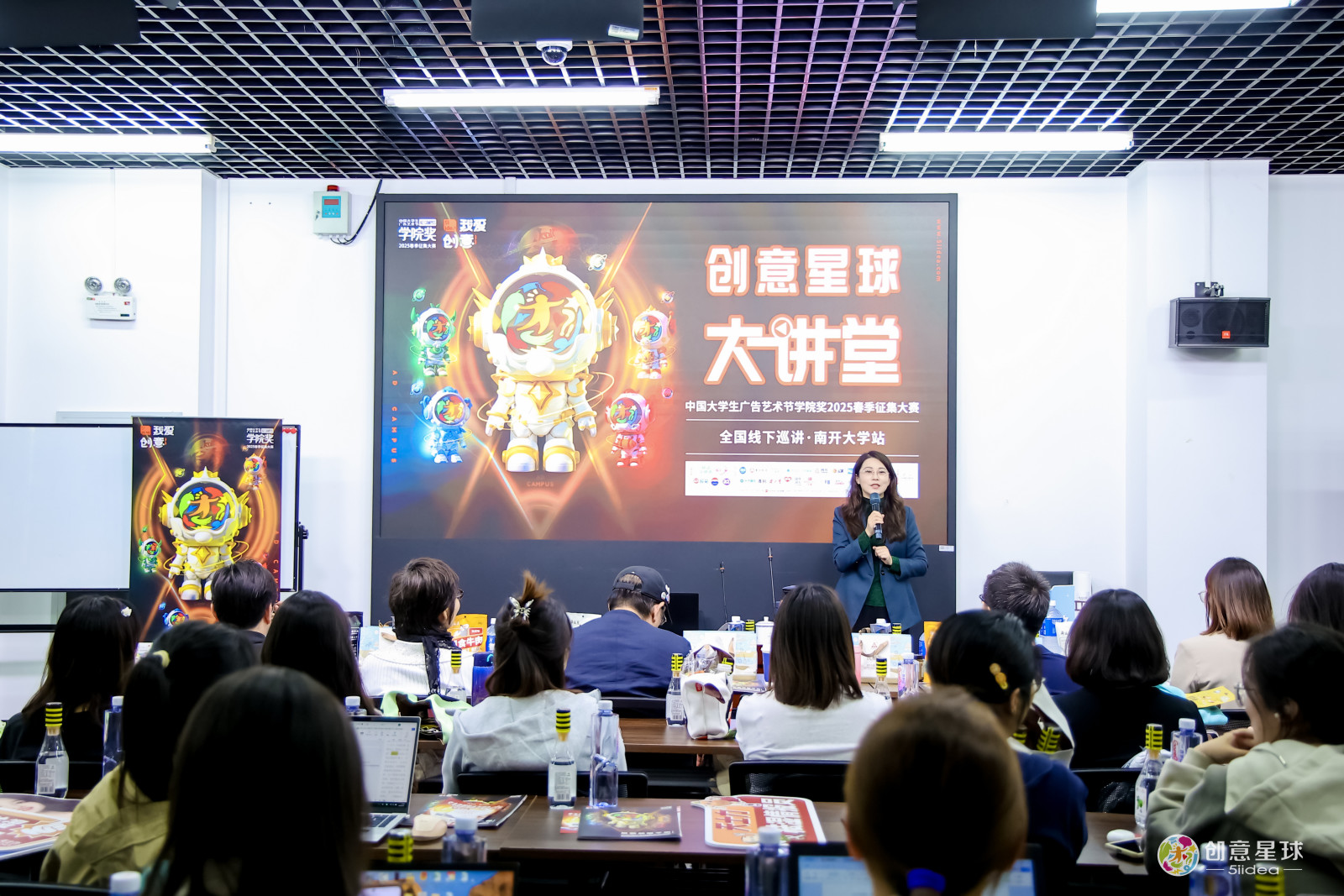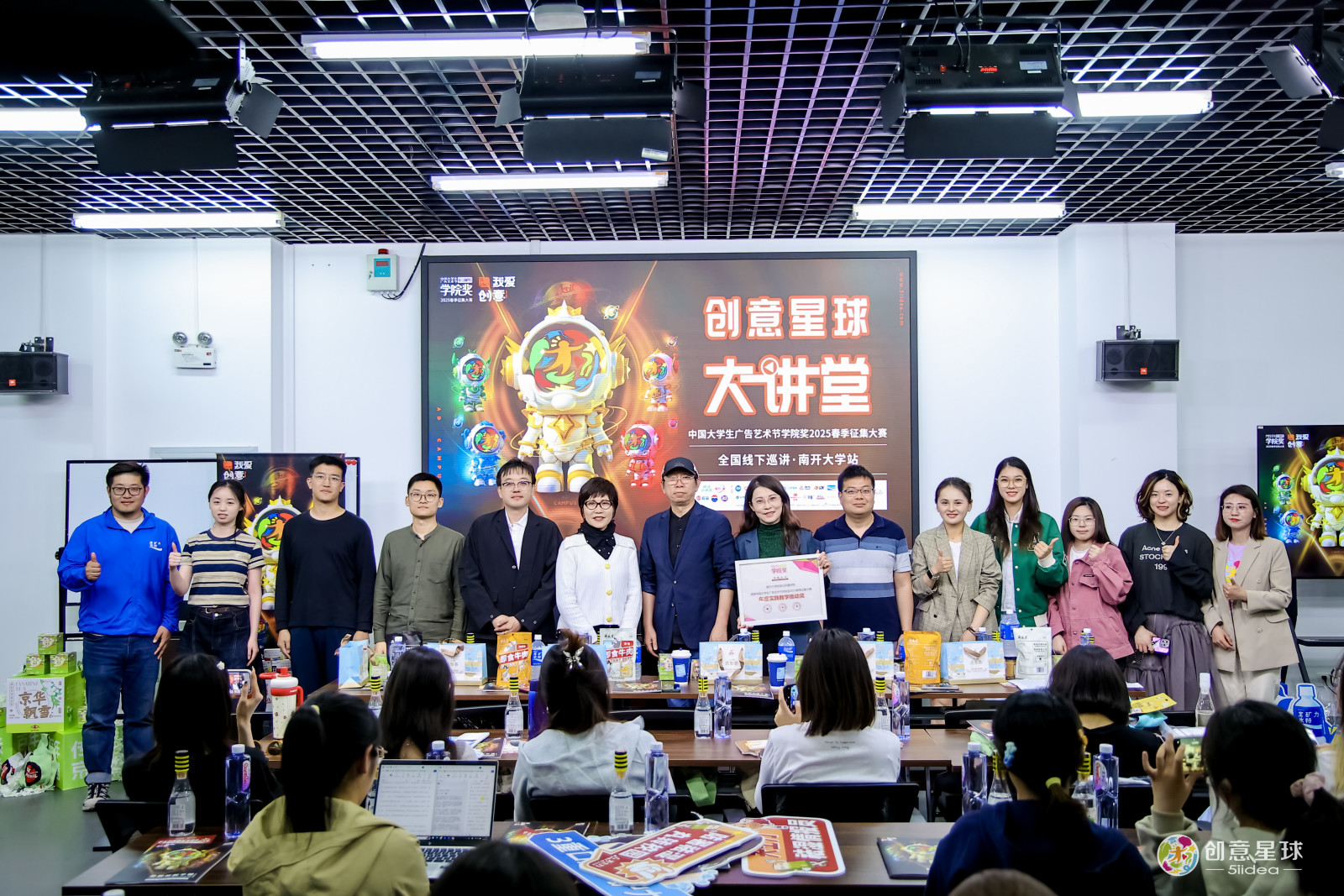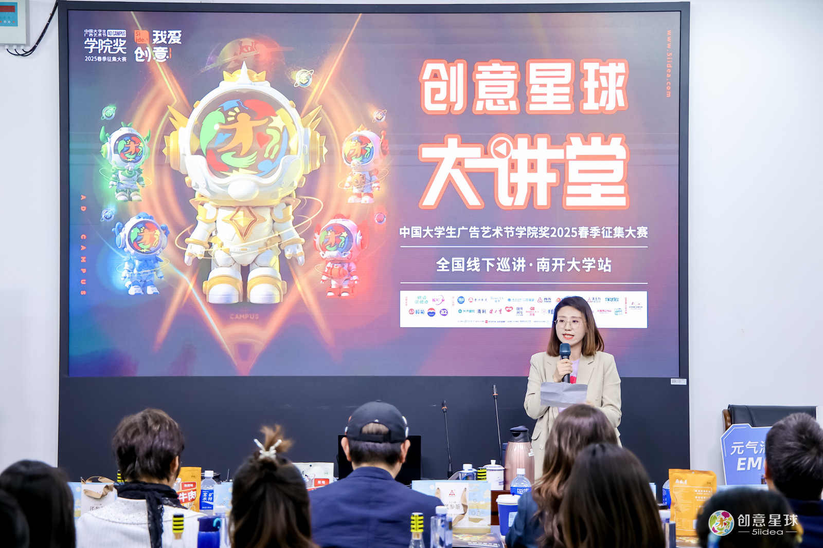 2025年4月24日,中国大学生广告艺术节学院奖2025春季创意星球大讲堂在南开大学新闻与传播学院顺利召开。南开大学新闻与传播学院副院长陈娜教授,中国大学生广告艺术节学院奖秘书长、广告人文化集团副总裁袁健女士,国际品牌协会亚太区主席、原梅高(中国)总裁、戛纳国际广告节评委董立津先生,华润紫竹药业廖雨宁女士,云南白药集团管毓星女士,京华茶业彭鑫蕊女士,宝矿力水特贾启森先生,天士力医药集团刘珊女士等学界专家、广告行业大咖、知名企业代表汇聚一堂共襄盛举。活动吸引了来自南开大学、天津师范大学、天津中医药大学、天津商务职业学院等高校的百余名师生齐聚秀山堂,共话产教融合新篇章。