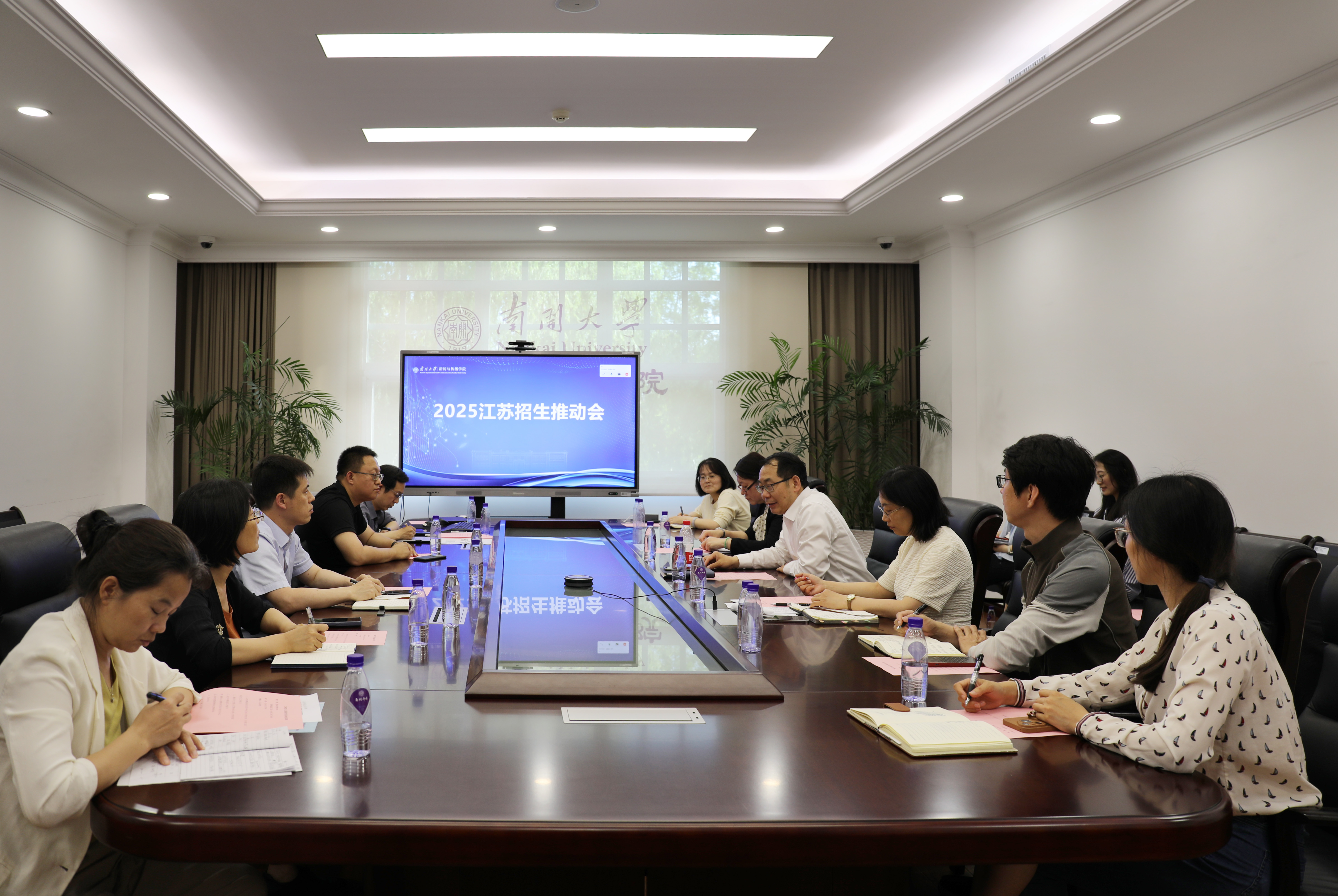 5月15日,南开大学江苏招生组召开2025年招生工作推进会,全面总结过往工作经验,深入分析当前招生形势,积极谋划今年的招生工作,全力备战招生季。校党委副书记牛文利出席会议,江苏招生牵头单位新闻与传播学院、汉语言文化学院、党委学生工作部、档案馆等单位负责人,江苏招生组全体老师参会。