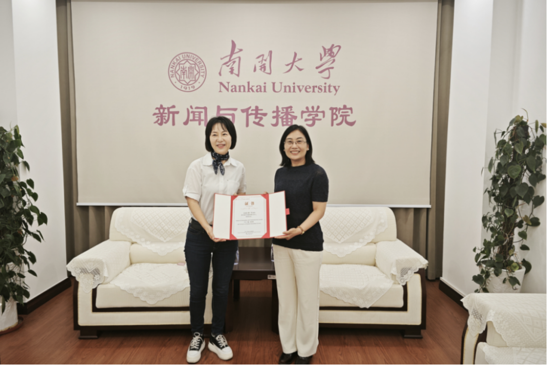 5月28日,新传学院“南开传播讲堂”在秀山堂开讲。南开大学校友,上海交通大学博士生导师、文化创意产业学院副院长薛可教授就“数字文化产业形塑国家形象的可见性”做主题报告。新传学院党委书记马长虹为薛可颁发 “南开传播讲堂主讲人”证书,学院青年教师、学生参加活动。