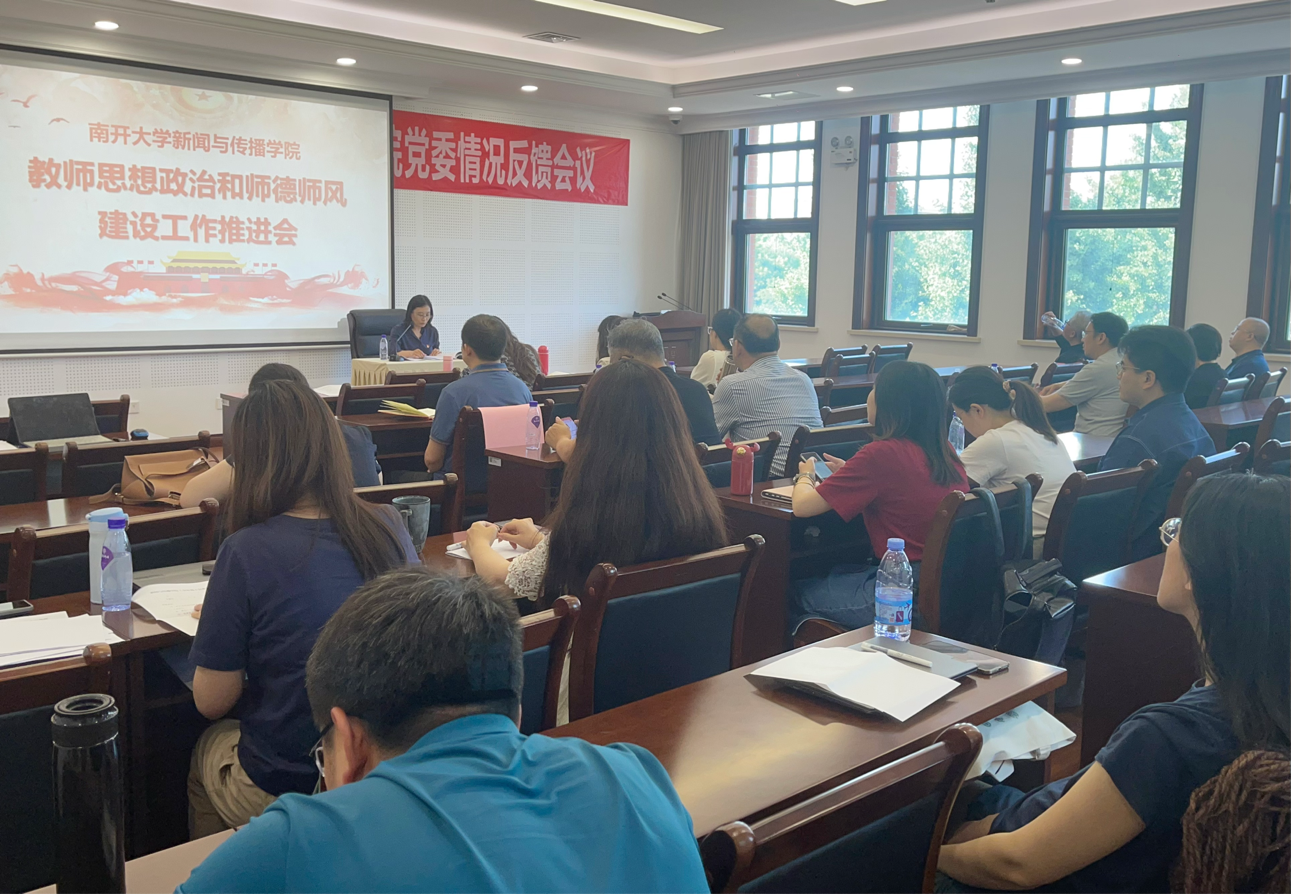 为深入贯彻中央八项规定精神,弘扬教育家精神,开展师德师风突出问题整治,6月6日,新传学院教师思想政治和师德师风建设工作推进会在秀山堂召开。学院党委书记马长虹主持会议,全体教职工参加。