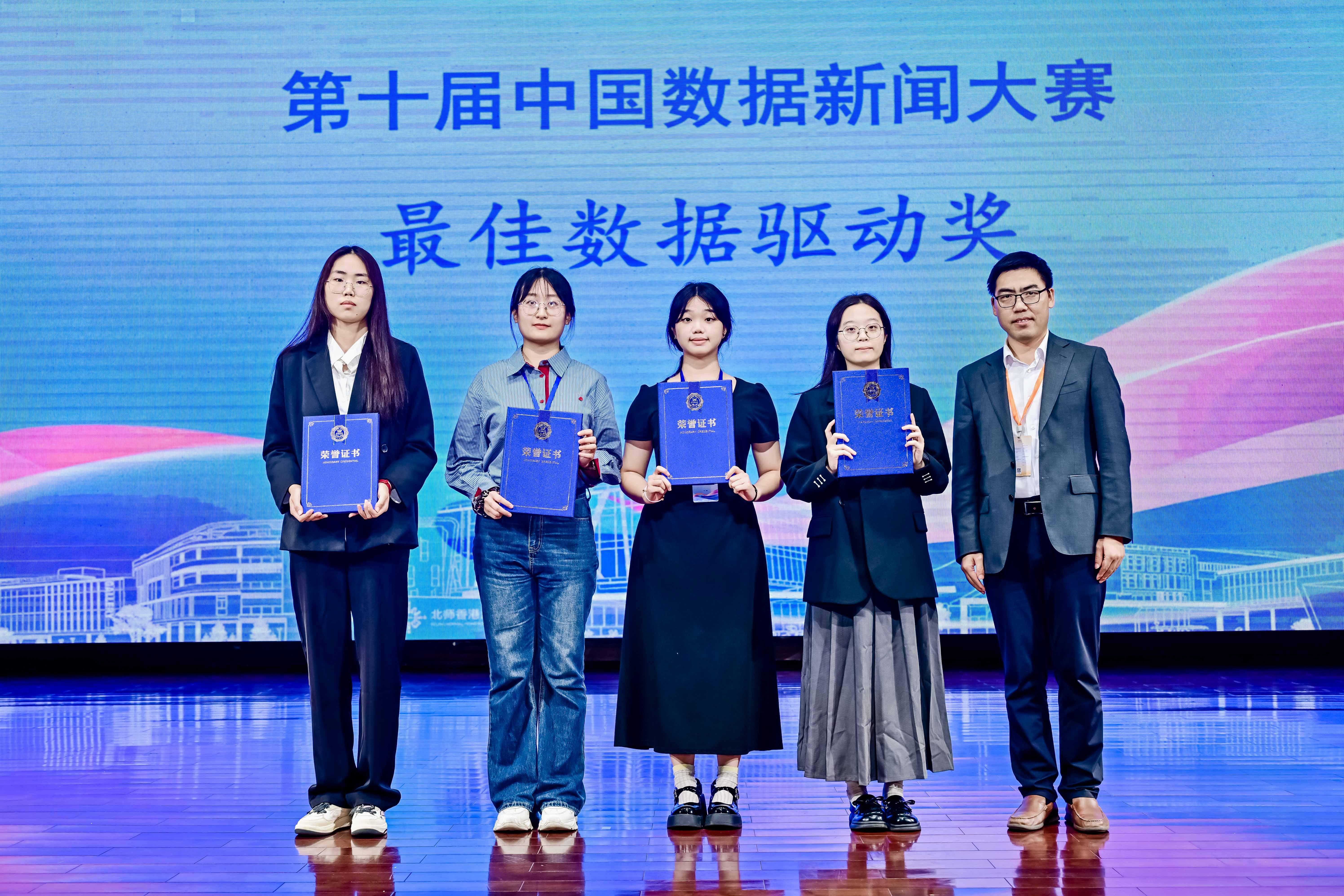 近日,第十届中国数据新闻大赛暨首届AIGC应用大赛在珠海举行。本届大赛共吸引全国300余所高校、1400余支团队、约5500人参赛,我院学子与中国人民大学、复旦大学、中国传媒大学等高校的学生同台竞技,最终斩获全国一等奖1项、二等奖2项、三等奖2项、最佳数据驱动奖1项,交出了亮眼的答卷。