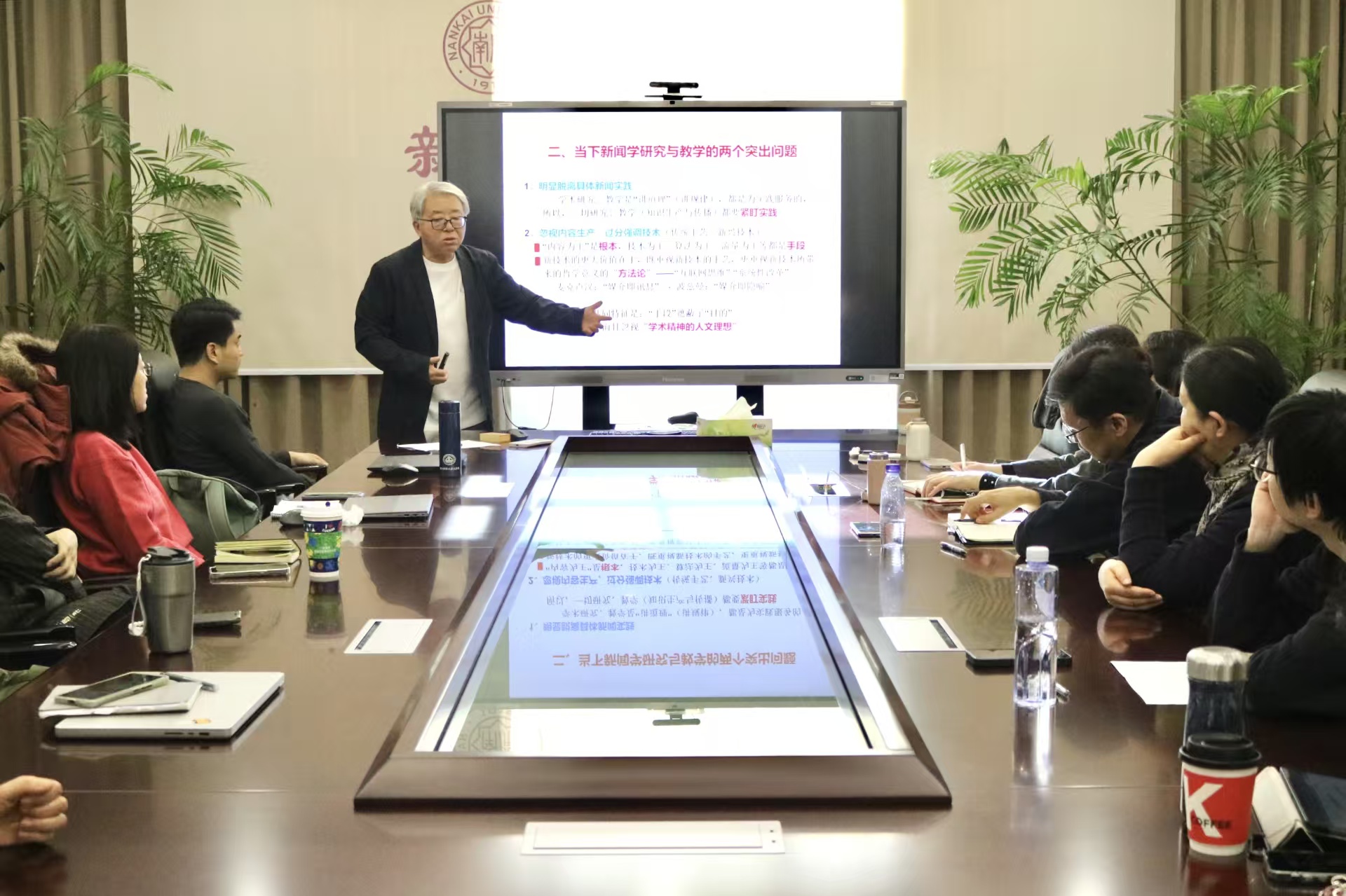 12月4日,由信息与传播学院主办、新闻学教研室承办的“2025本科教学质量提升年”系列活动之信息与传播学院教学沙龙在秀山堂208举行。活动由新闻学教研室主任刘忠波教授主持,特邀孙德宏教授、陈娜教授作专题讲座。十余位专业教师围坐交流,共同围绕新闻学的学术精神与实践价值、课程思政金课建设以及本科教学质量提升等核心议题展开深入探讨。