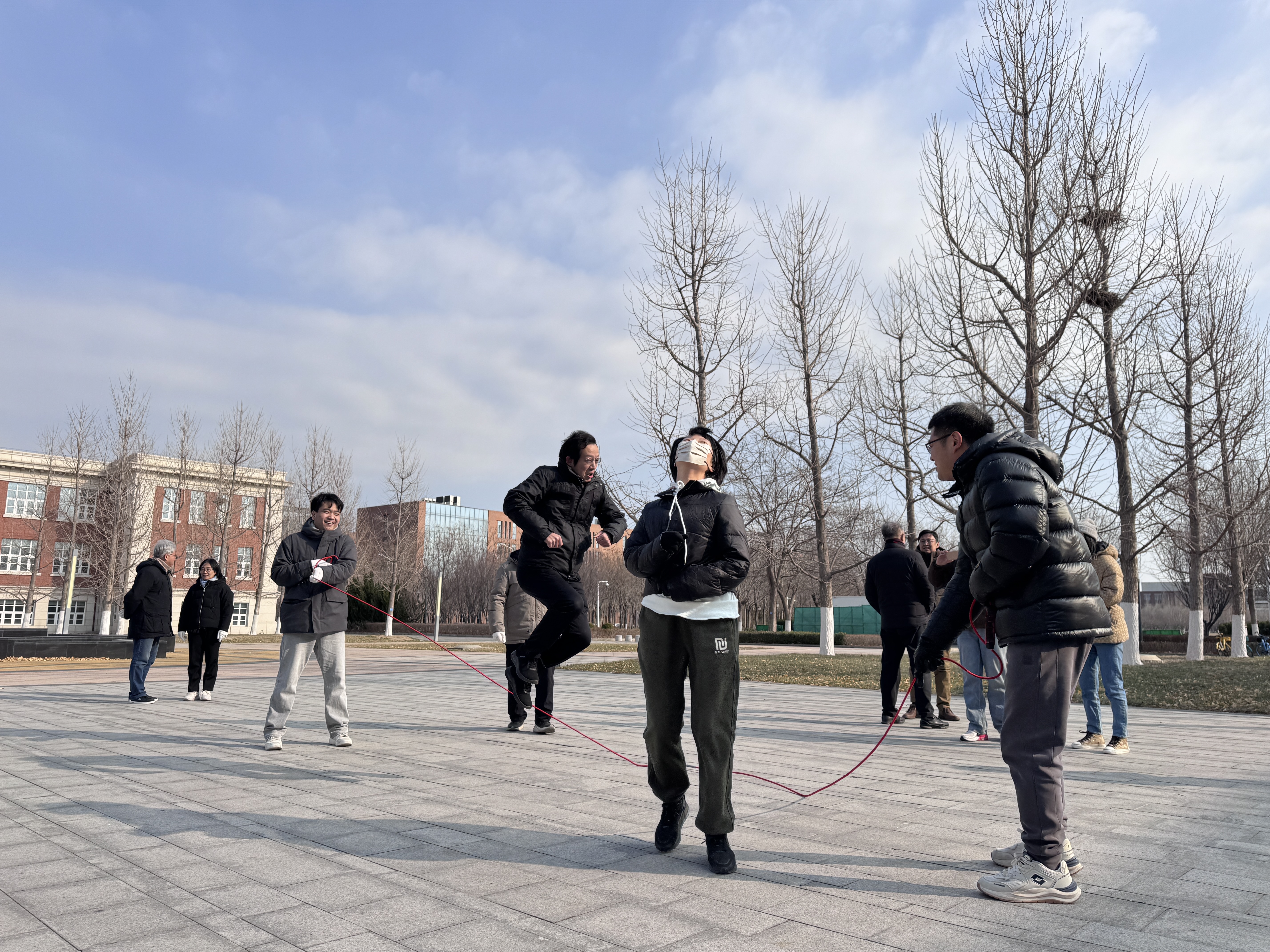 本次运动会项目设置丰富,集趣味性、协作性于一体,既有速度与力量的角逐,也有技巧与默契的考验,兼顾了团队协作与个人展示。活动在扣人心弦的拔河比赛中拉开帷幕,随着裁判一声哨响,现场气氛瞬间点燃,各参赛队齐心协力、劲往一处使,充分展现了学院教职工昂扬向上、团结拼搏的精神风貌。随后的单人跳绳环节,老师们轻盈腾跃,在速度与耐力的比拼中尽显个人风采。紧张刺激的个人赛后是节奏稍缓的集体跳绳,项目进一步考验了团队的默契配合,摇绳与跳绳的节奏协调一致,将活动推向了欢乐和谐的高潮。此外,两人三足、托乒乓球接力跑等趣味项目则考验了同事间的默契配合,现场加油声、欢笑声此起彼伏。