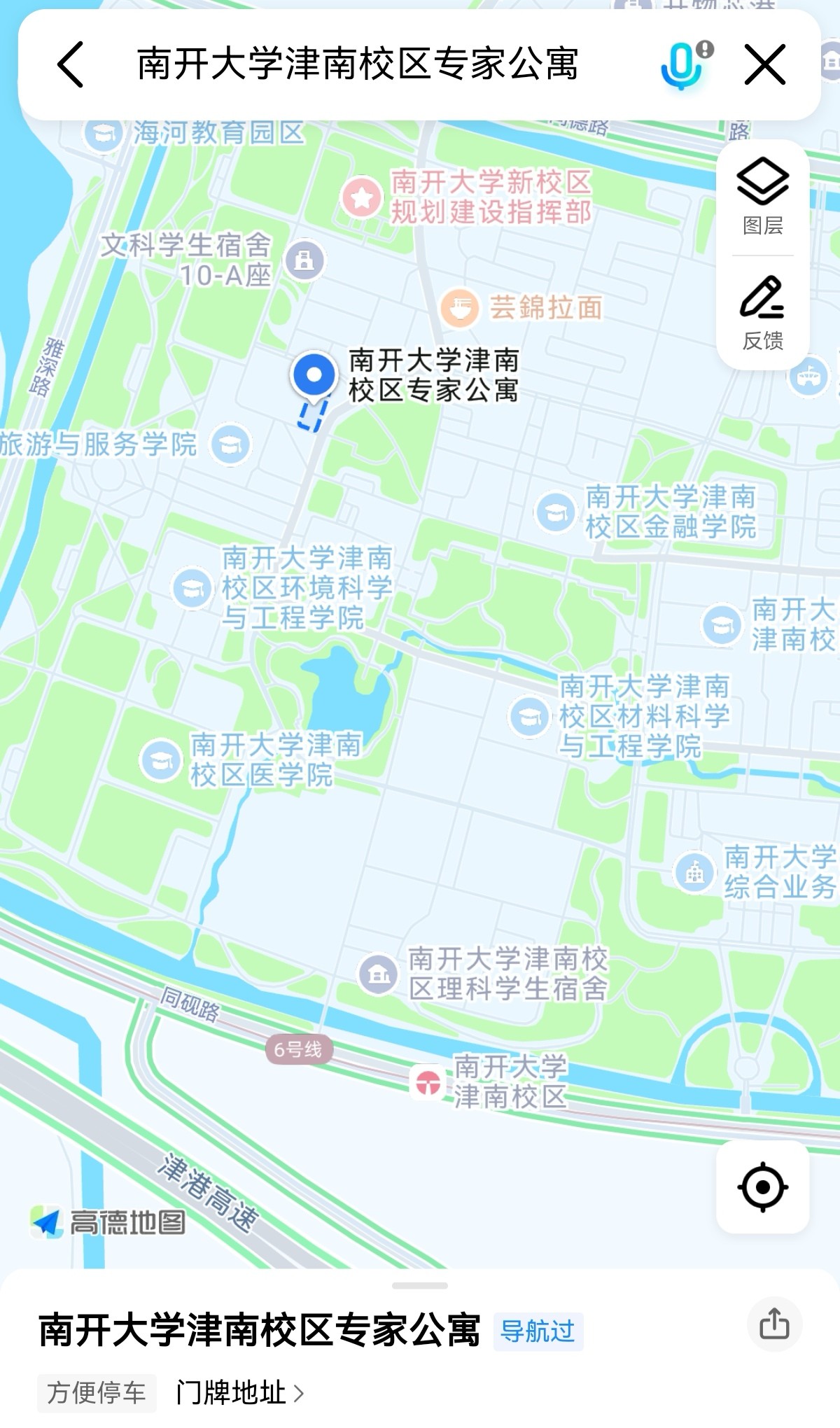 • 地铁6号线“南开大学津南校区站”A口紧邻津南校区西南门,可由此入校。