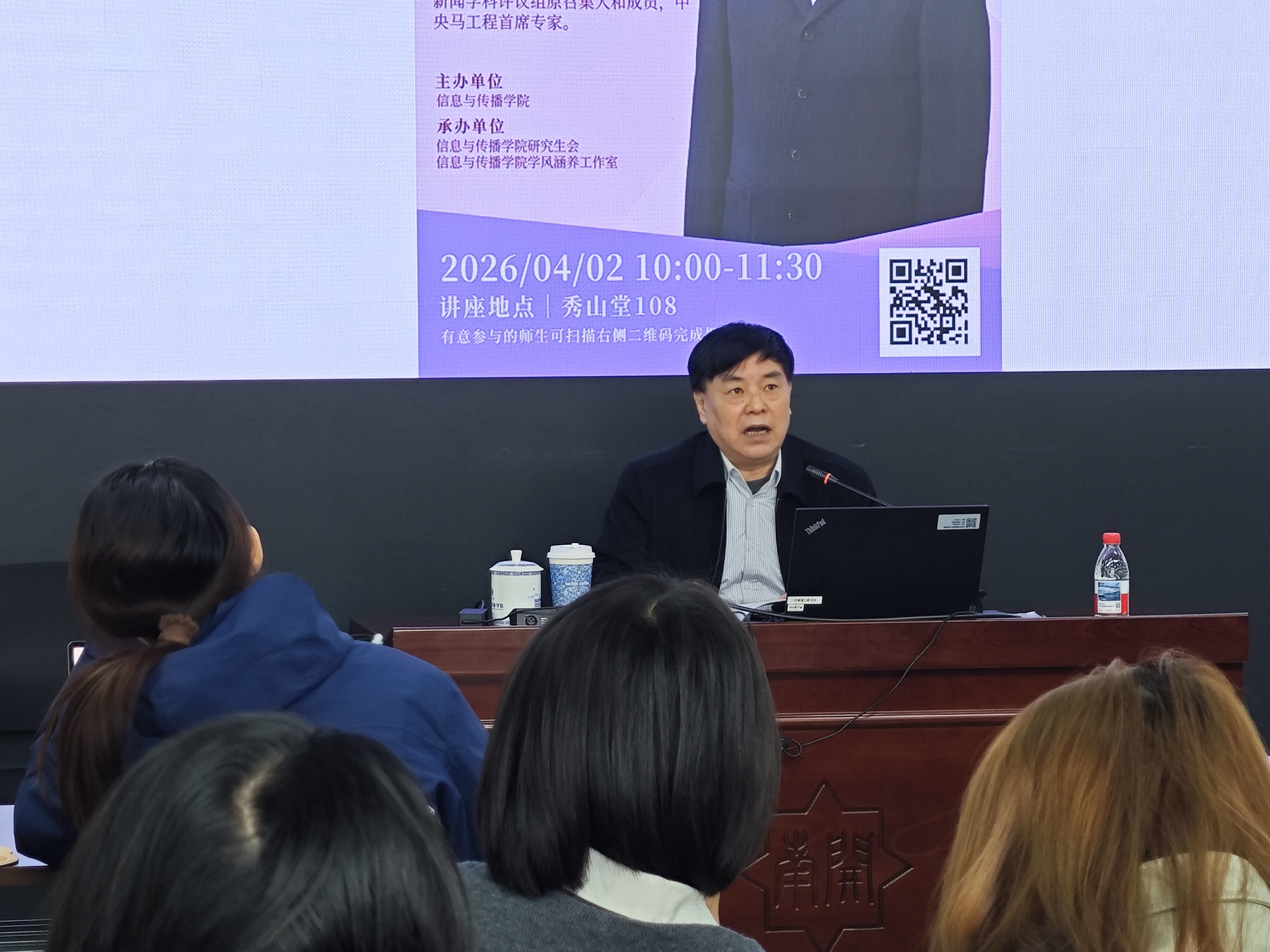 尹韵公教授指出,国际传播发展动态与国家综合实力深度绑定,国际传播策略的制定与实施始终服务于国家整体发展战略。他谈到,当前西方部分媒体的涉华报道仍存在对中国国情与发展实际认知不足的问题,寄语学子要跳出单一的新闻报道与评论框架,以更宏观、客观的视角审视新闻事件。他强调,如今中国日益走近世界舞台中央,国际话语权显著提升,舆论环境发生深刻转向;挖掘中国发展深层内涵、用心用情讲好中国故事,是新时代新闻传播人的核心使命。